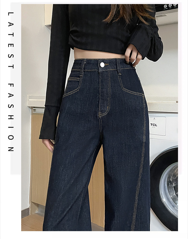 丹宁高腰阔腿牛仔裤女秋冬2025潮流百搭新款深蓝色宽松加绒拖地裤
