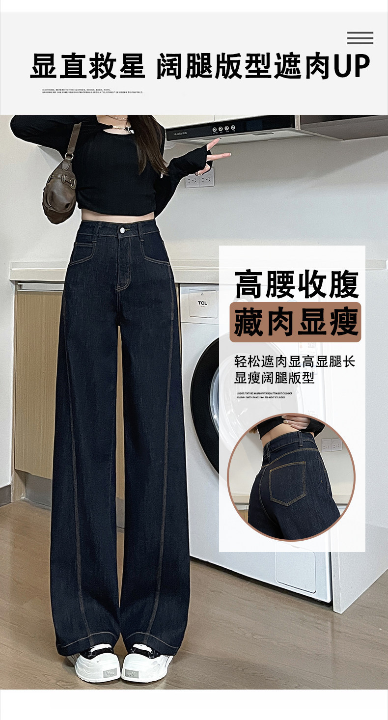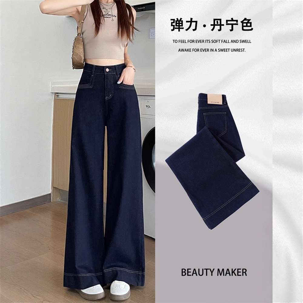 今年流行爆款阔腿牛仔裤女2025秋冬新款丹宁蓝弹力直筒拖地裤子