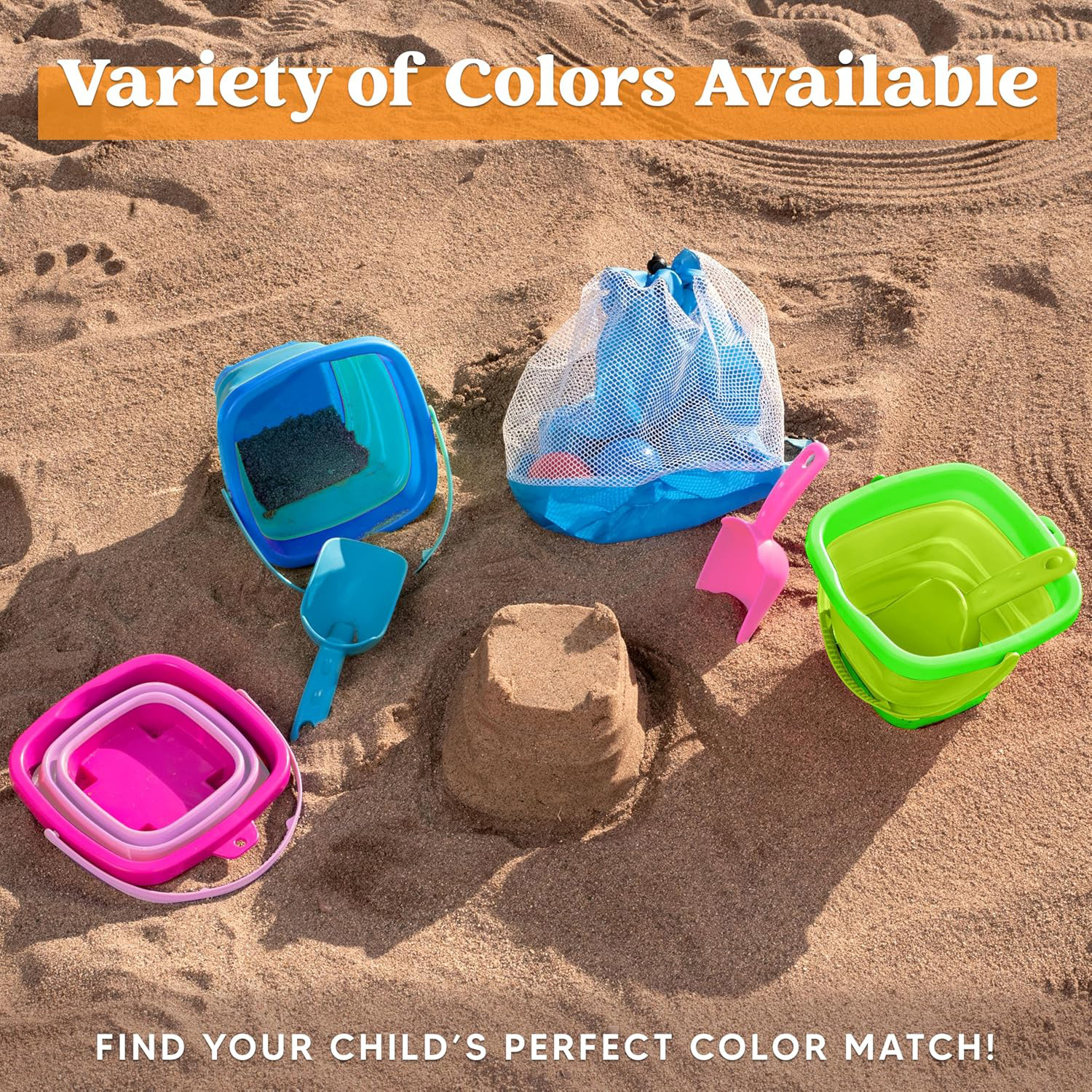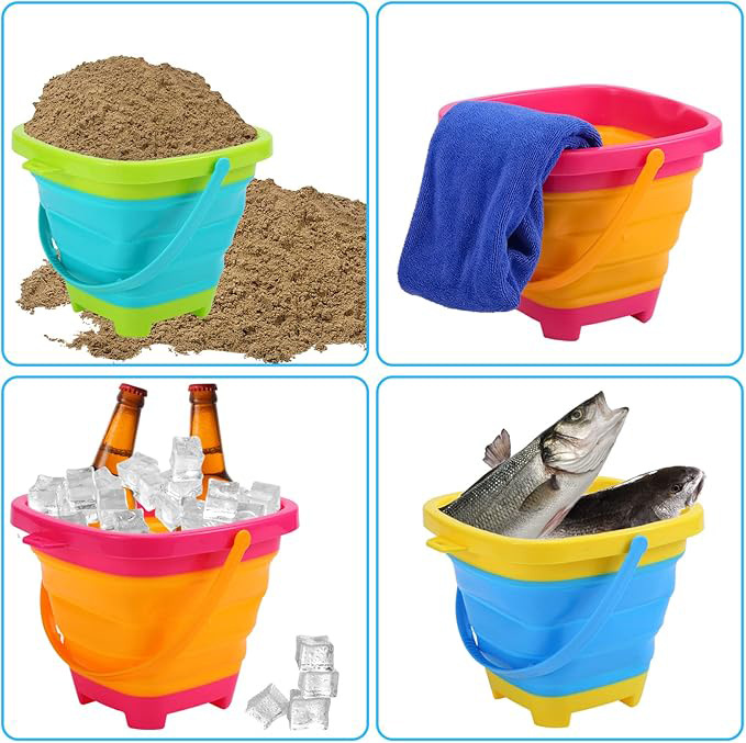 跨境亚马逊儿童可折叠沙滩玩具配有铲子旅行沙滩必水桶儿童沙玩具