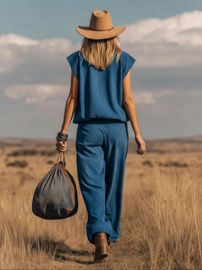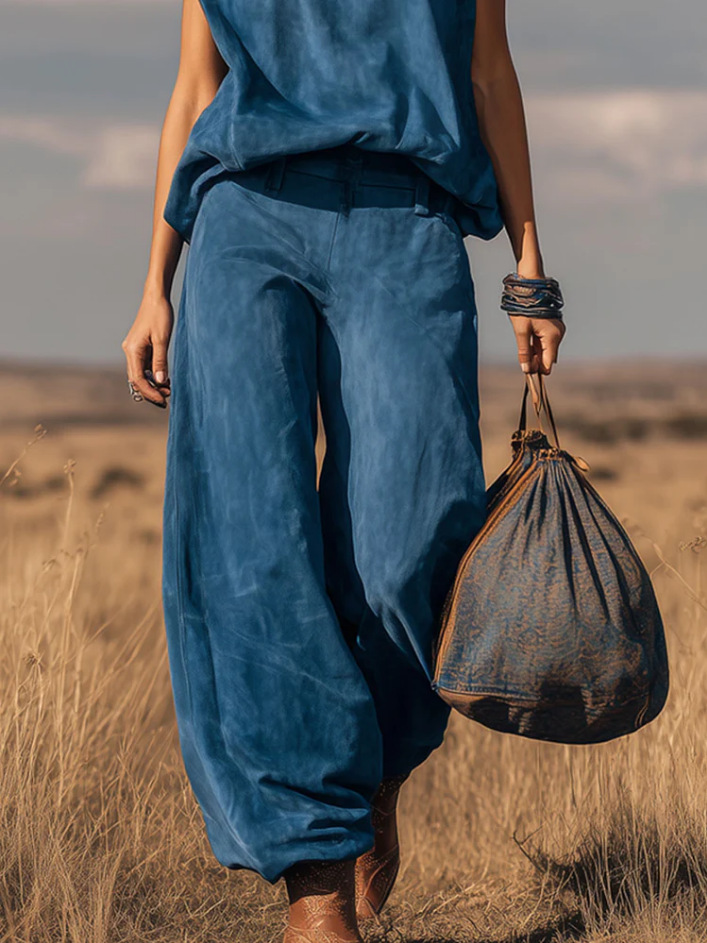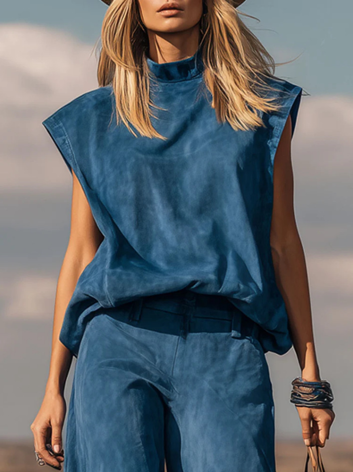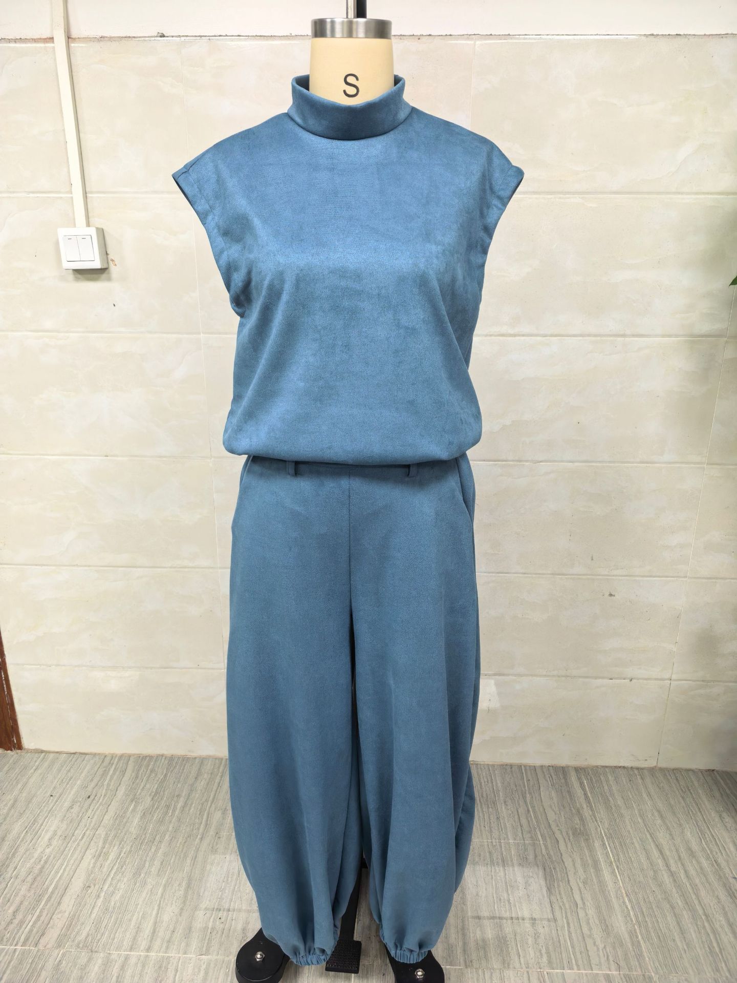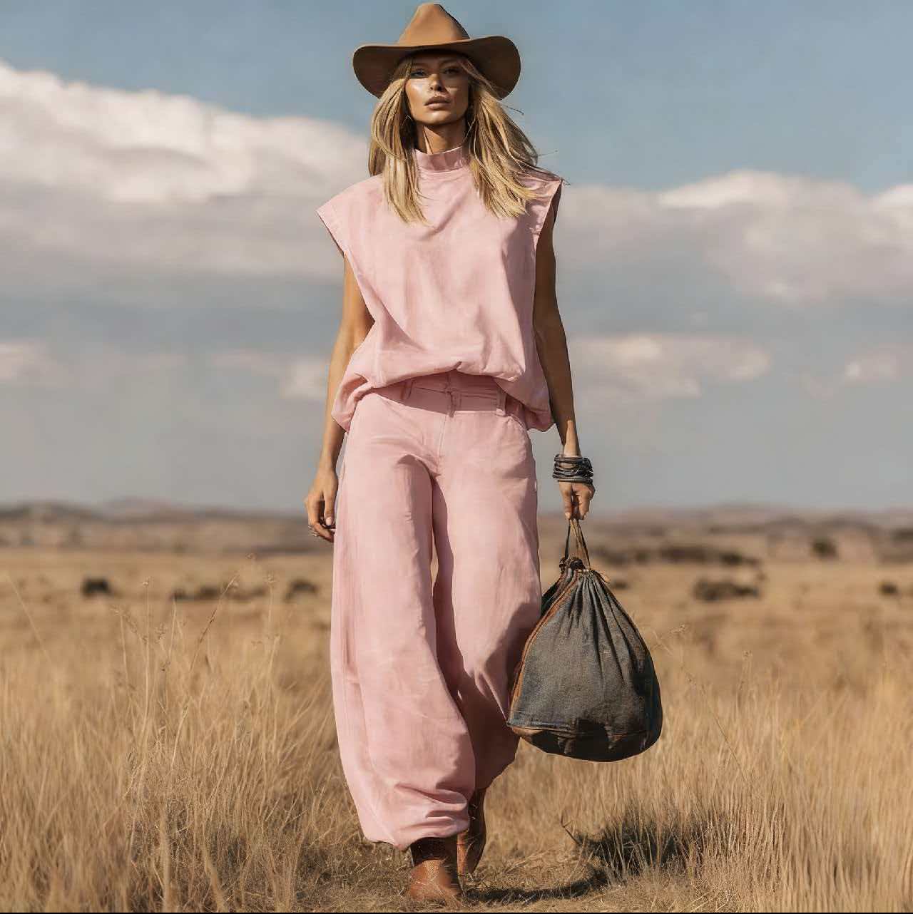 2026欧美亚马逊独立站跨境时尚新款西部风无袖阔腿收脚麂皮绒套装