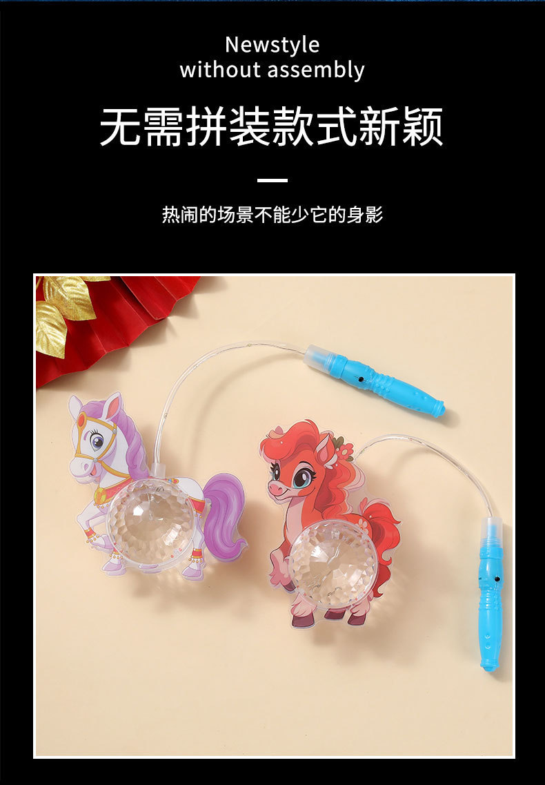 2026新款卡通投影小马灯笼春节马年新年元旦摆摊热卖儿童发光玩具