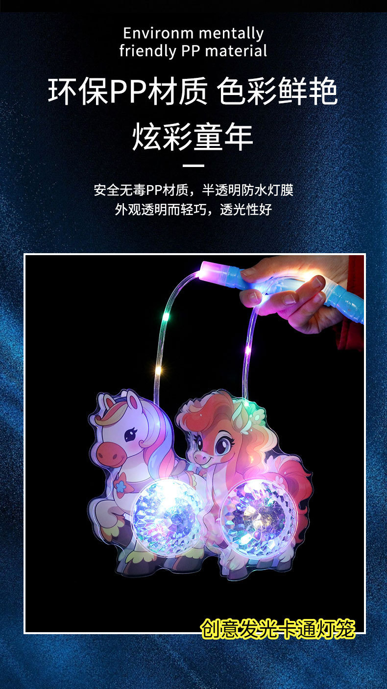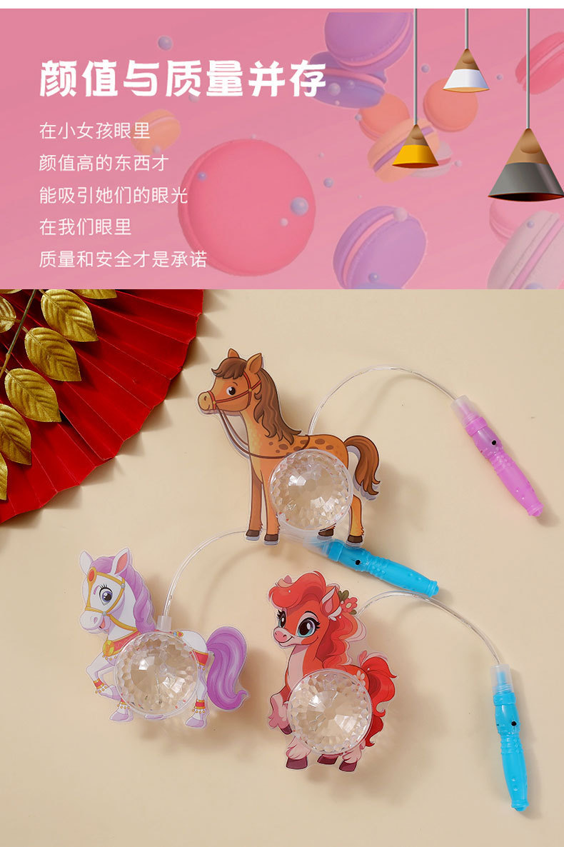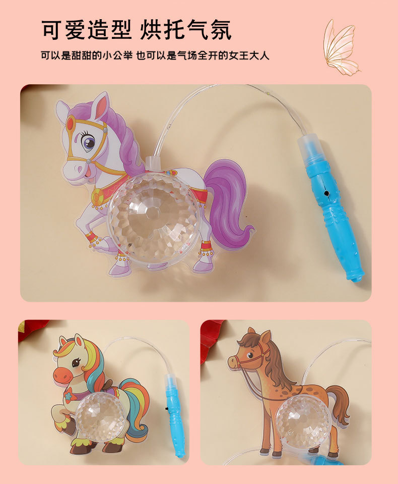 新年小马灯笼儿童发光马年pvc投影灯笼元宵节摆摊闪光玩具批发