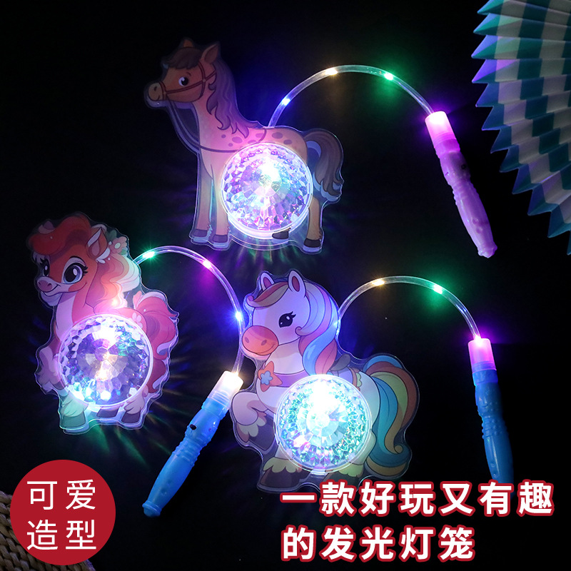 春节小马灯笼儿童发光马年手提投影灯笼元宵节摆摊闪光玩具批发
