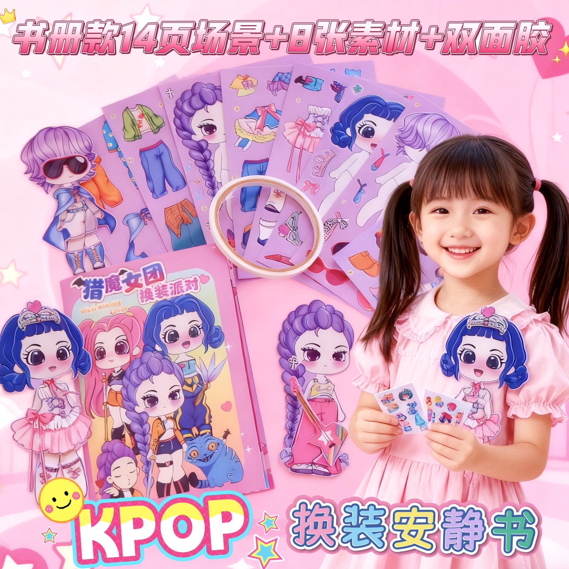 K-pop猎魔女团换装安静书免裁剪儿童DIY益智玩具换装游戏书礼物+