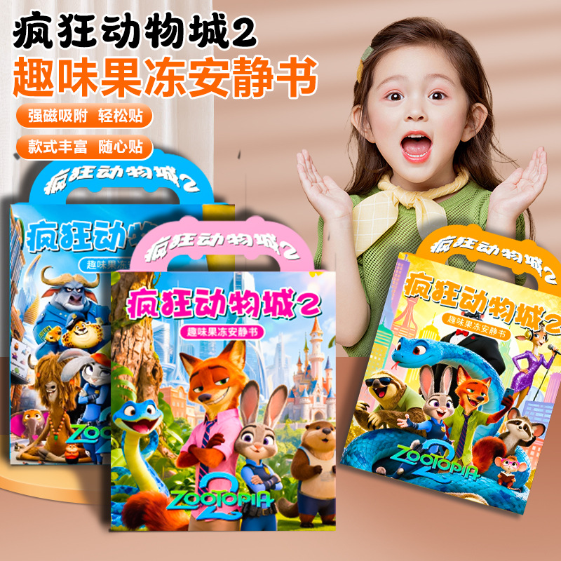 新款疯狂动物城2周边果冻贴安静书儿童手工diy反复粘贴可水洗玩具