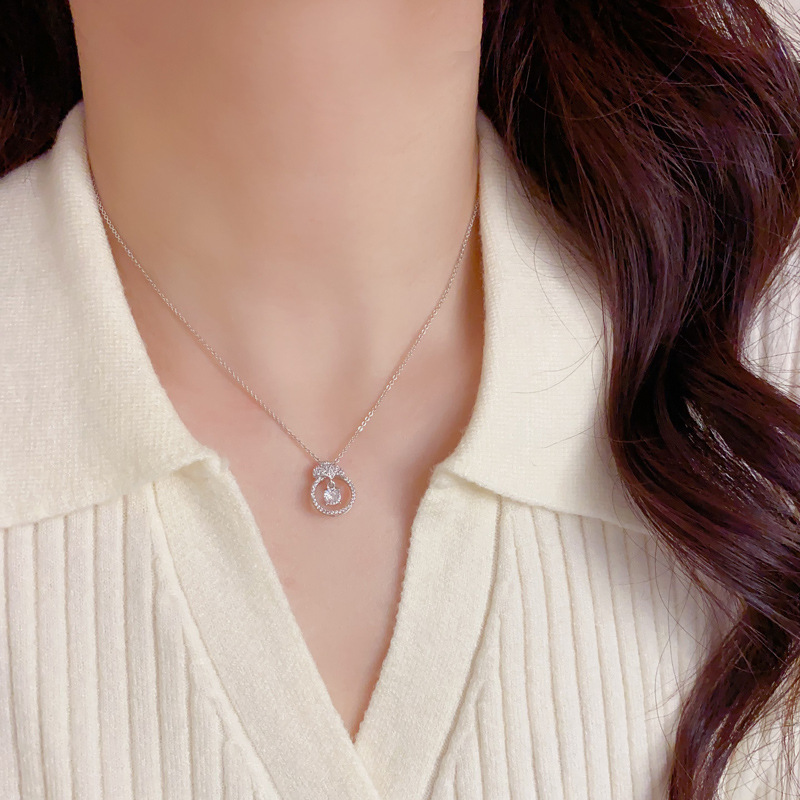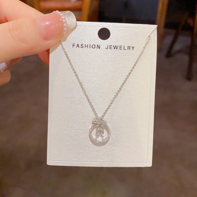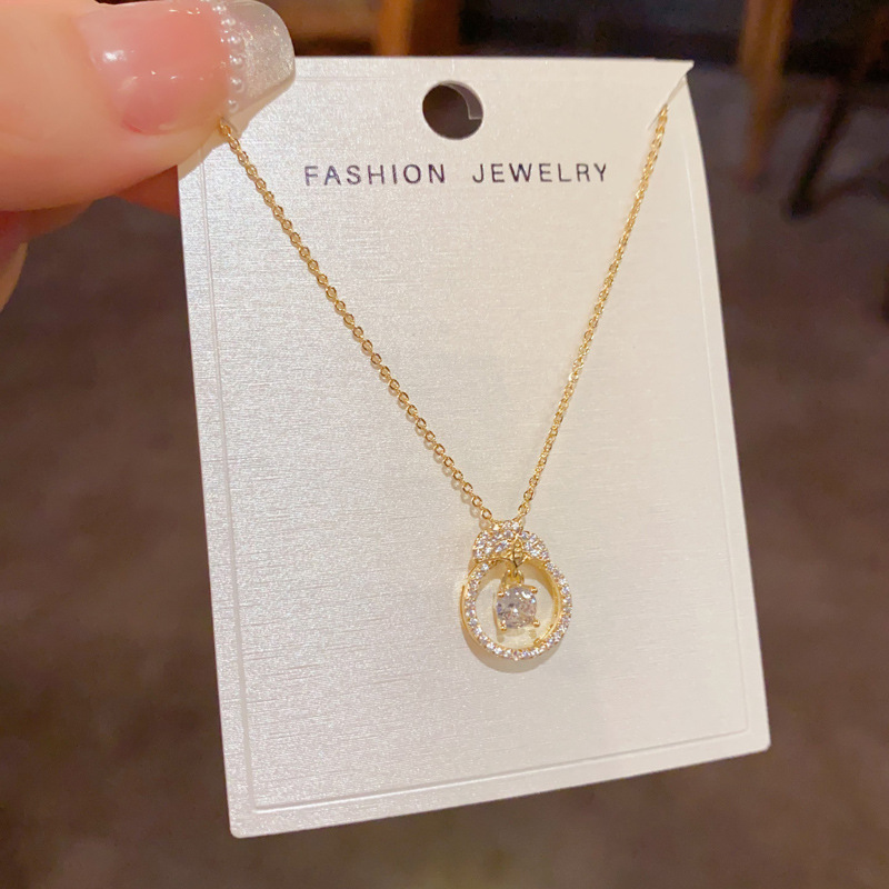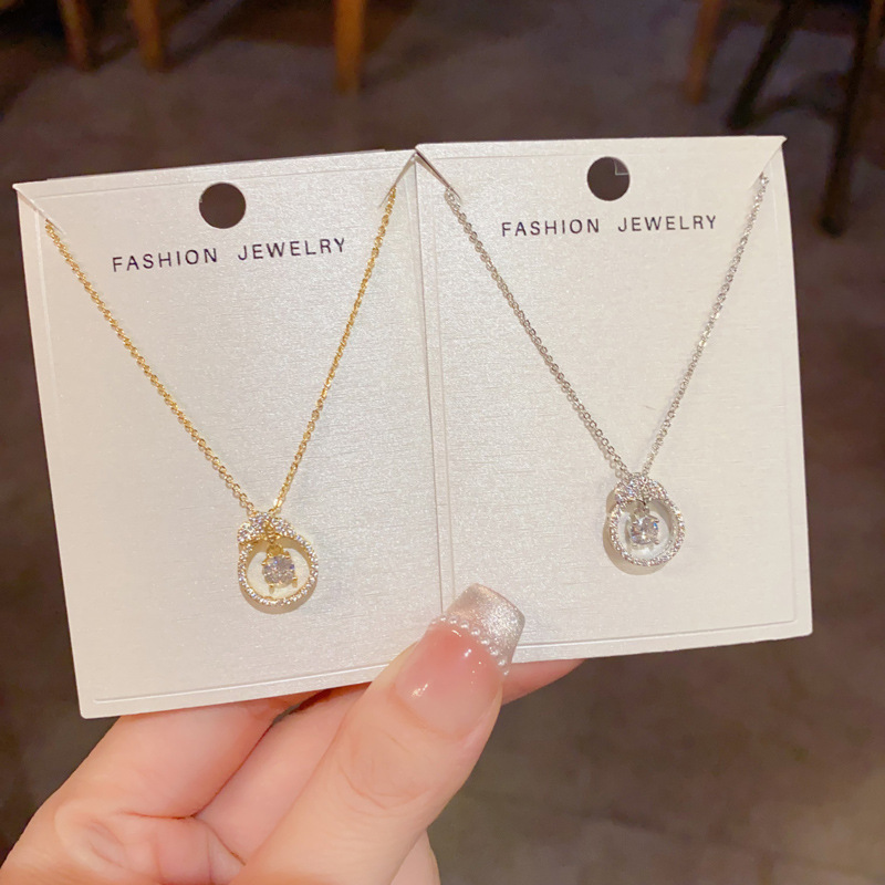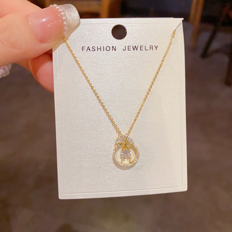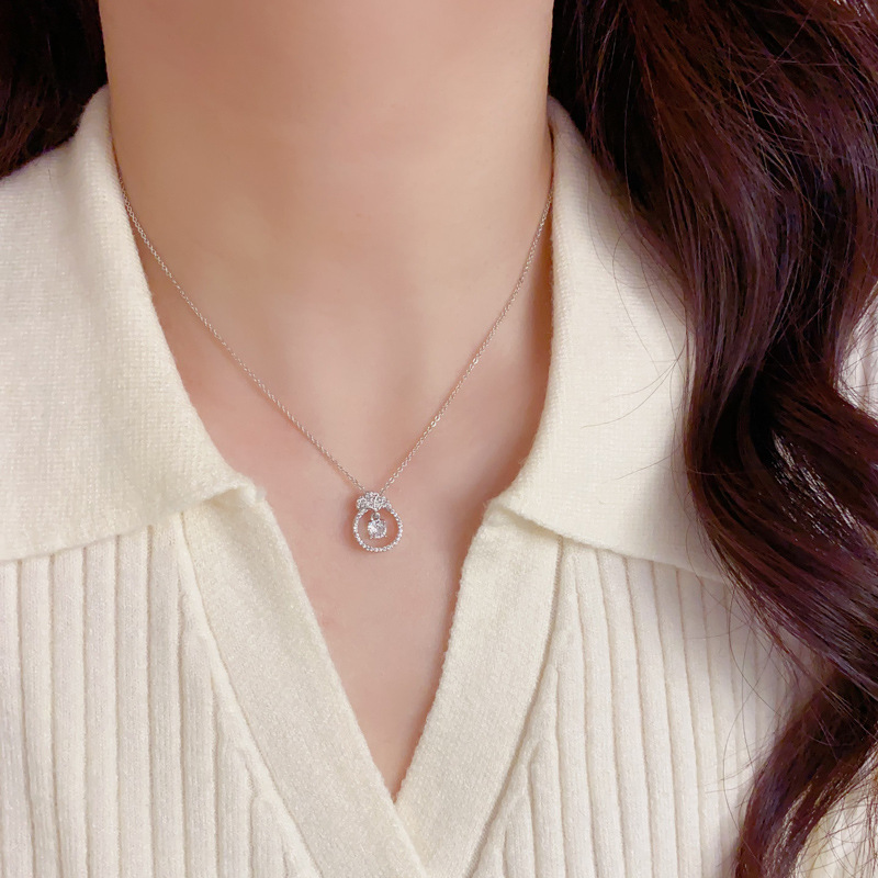 日韩精致时尚满钻银杏叶圆环项链气质轻奢百搭高级感超闪锁骨链女