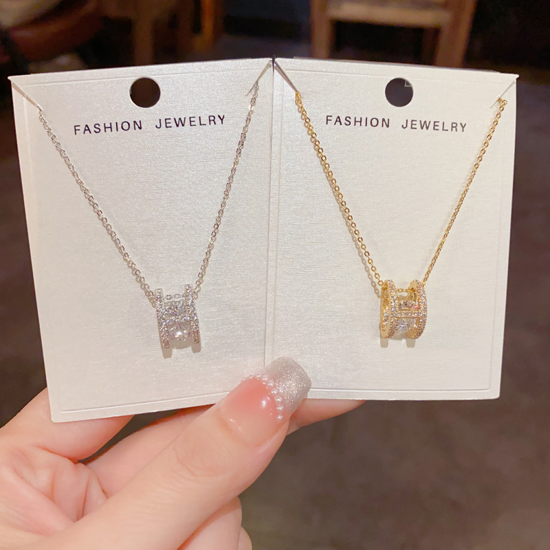 小众时尚简约满钻H字母吊坠项链精致轻奢百搭高级感超闪锁骨链女
