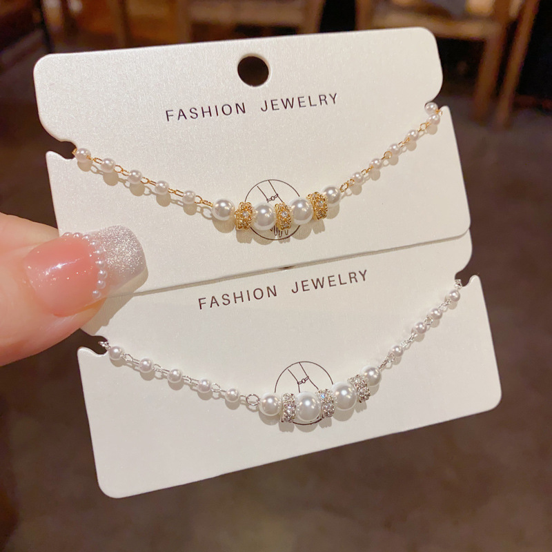 日韩精致时尚温柔百搭满钻椭圆珍珠手链小众气质简约设计感手饰品