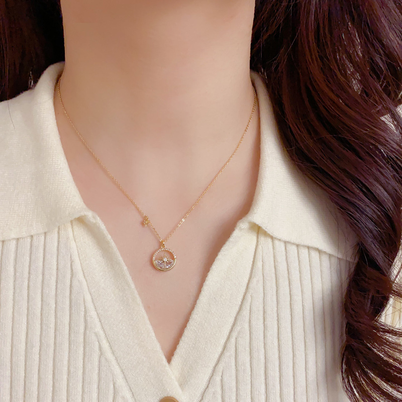 日韩精致时尚百搭满钻芒星圆环项链气质轻奢简约独特设计感锁骨链