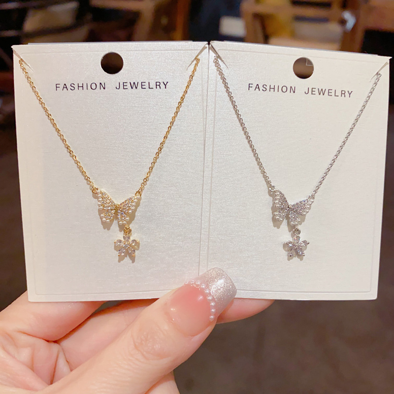 小众气质时尚珍珠满钻蝴蝶花瓣吊坠项链精致轻奢百搭高级感锁骨链
