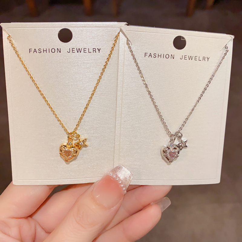 日韩精致时尚镶钻金属爱心芒星项链气质轻奢独特设计感锁骨链批发