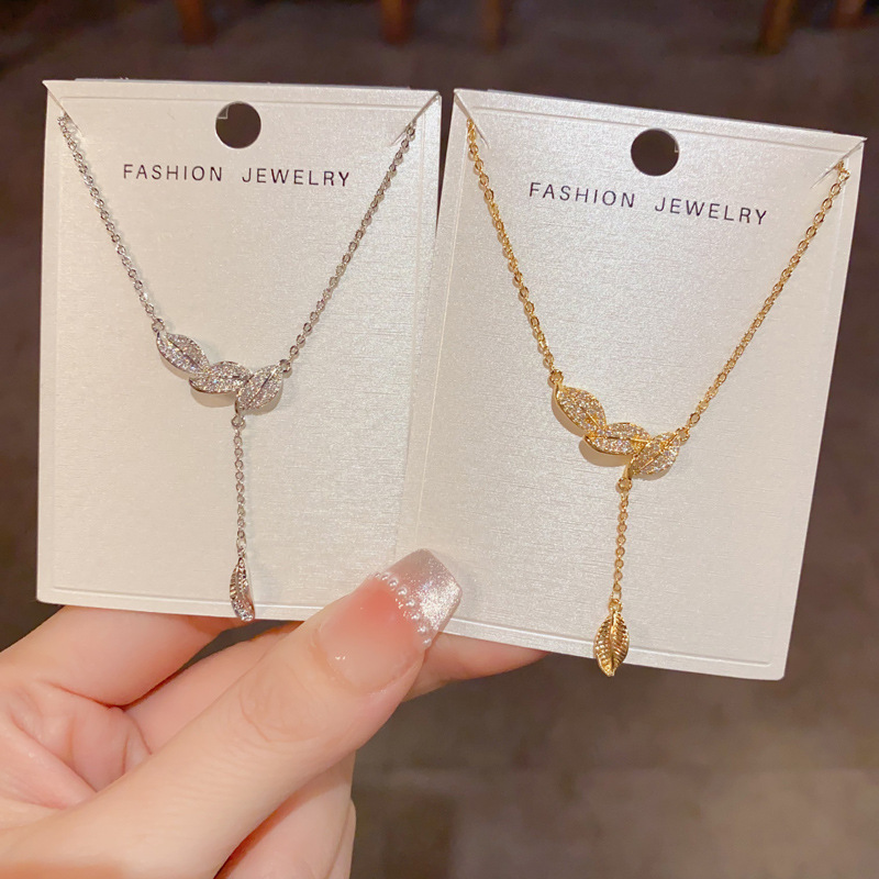 日韩精致时尚百搭满钻树叶流苏项链气质轻奢独特设计感锁骨链批发