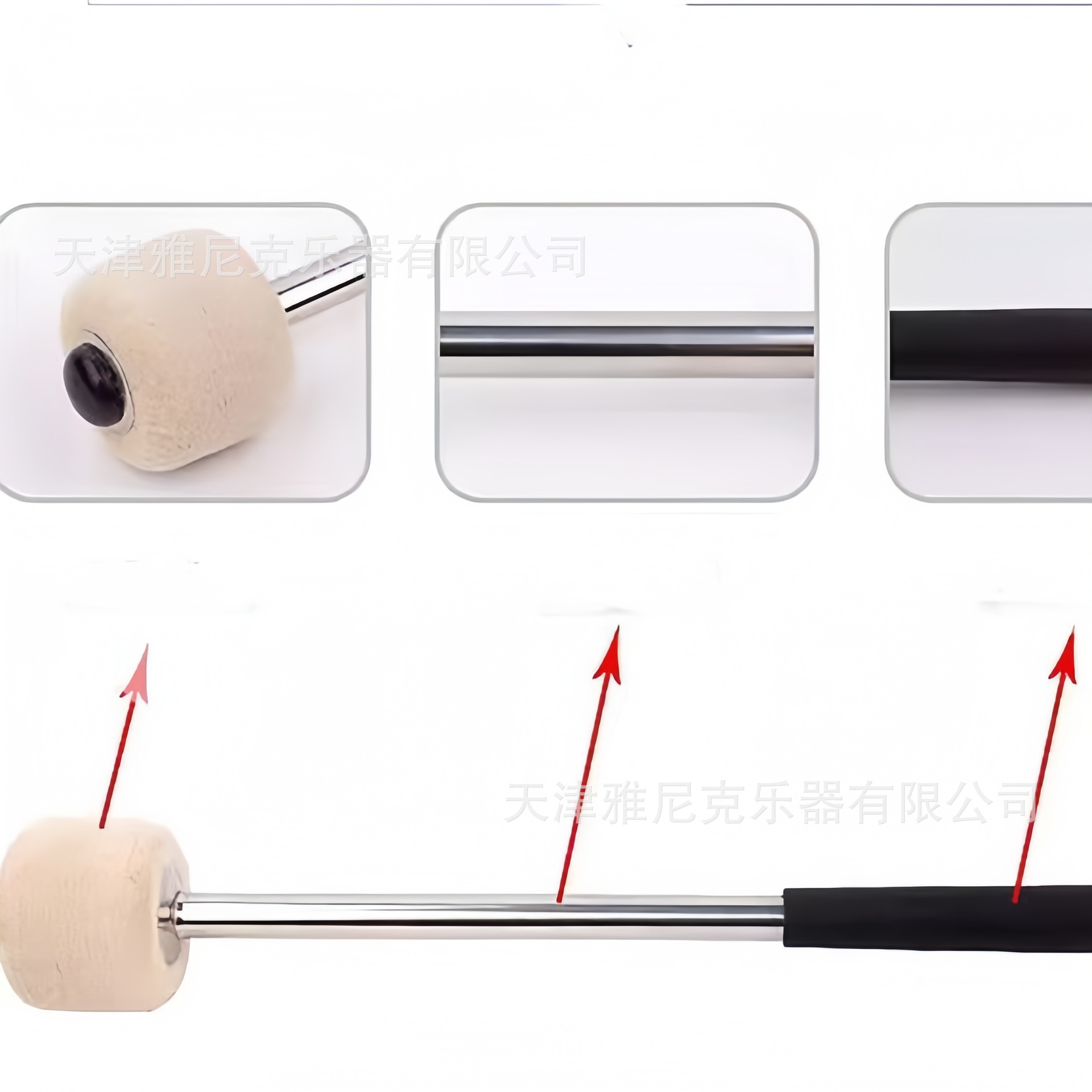 打击乐配件大军鼓锤羊毛毡不锈钢鼓棒行进鼓乐队练习演奏大鼓槌