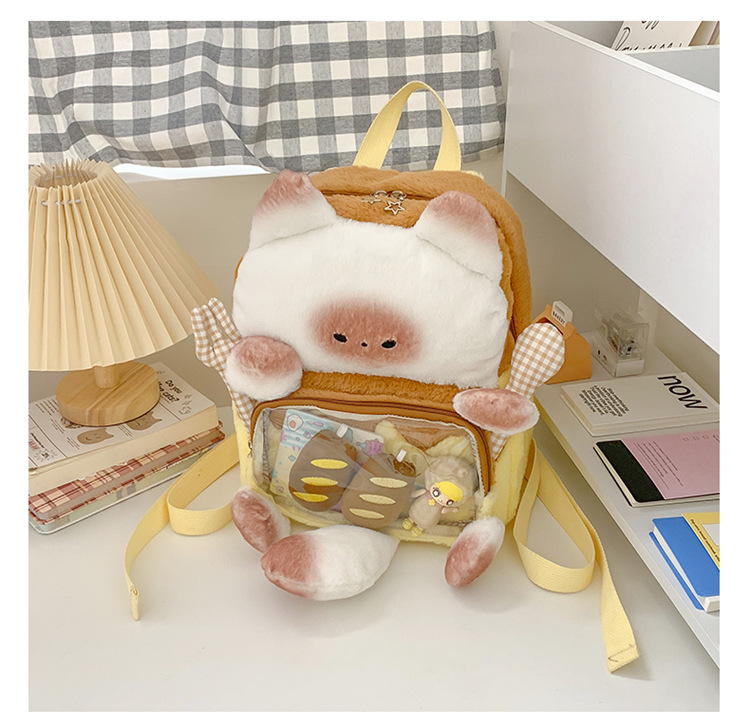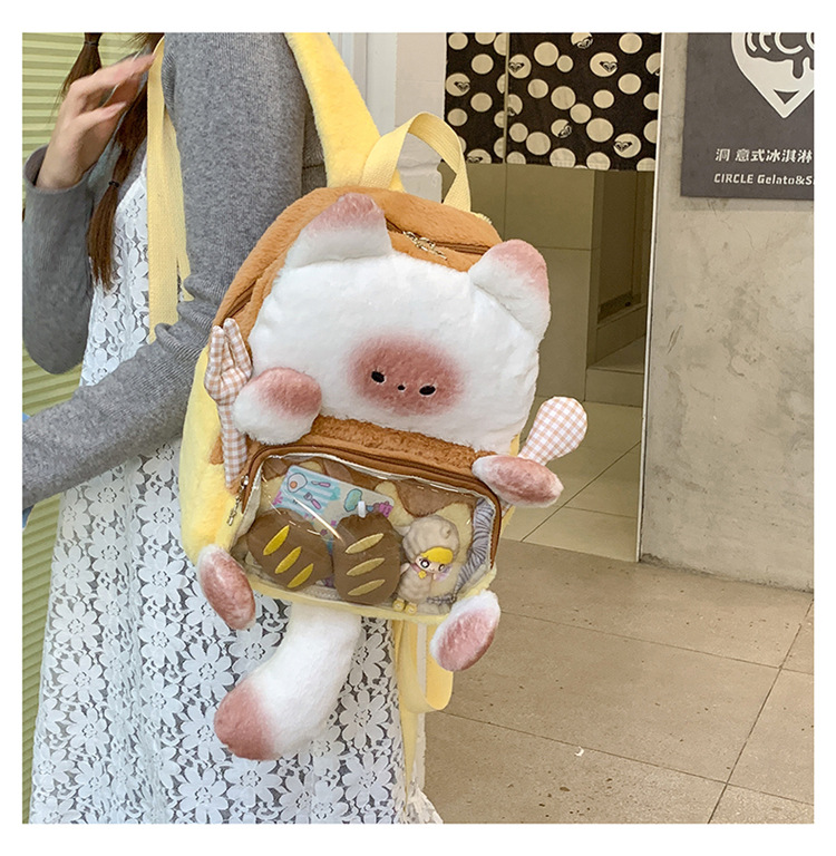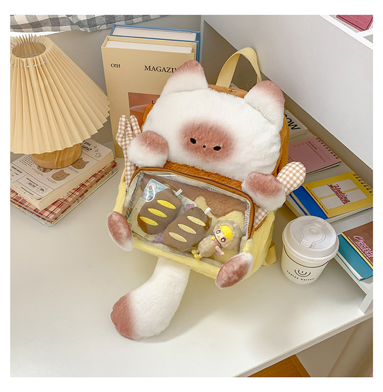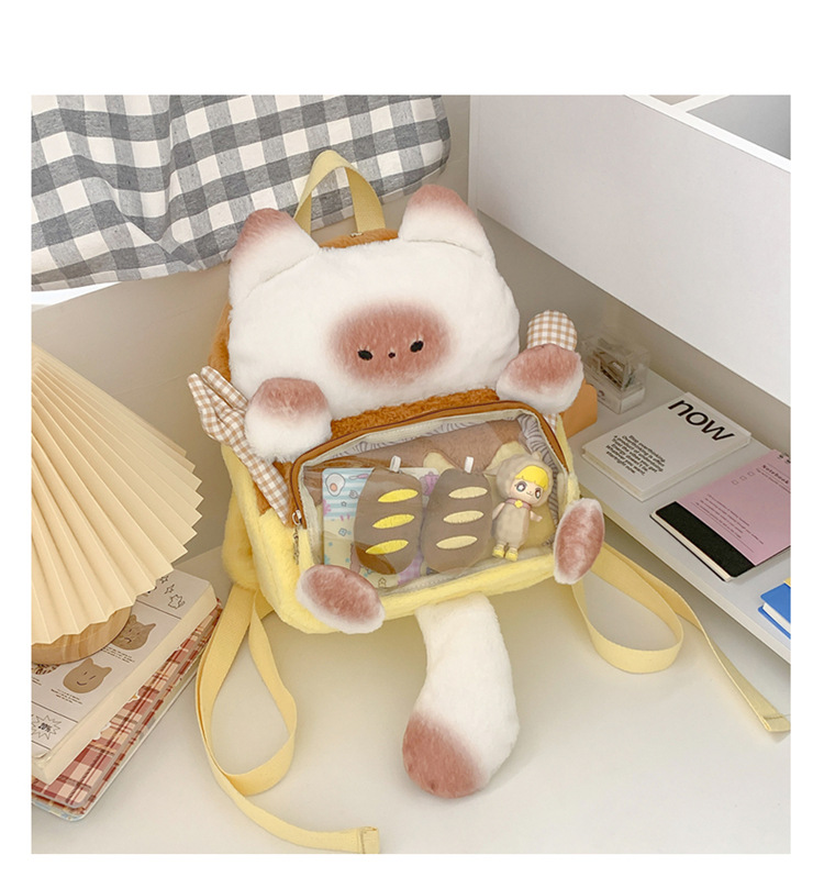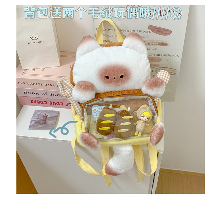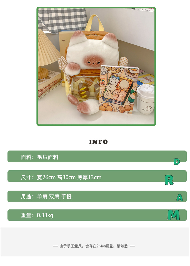 可爱乖巧面包小猫背包少女校园清新可爱双肩包日常卡通大容量背包