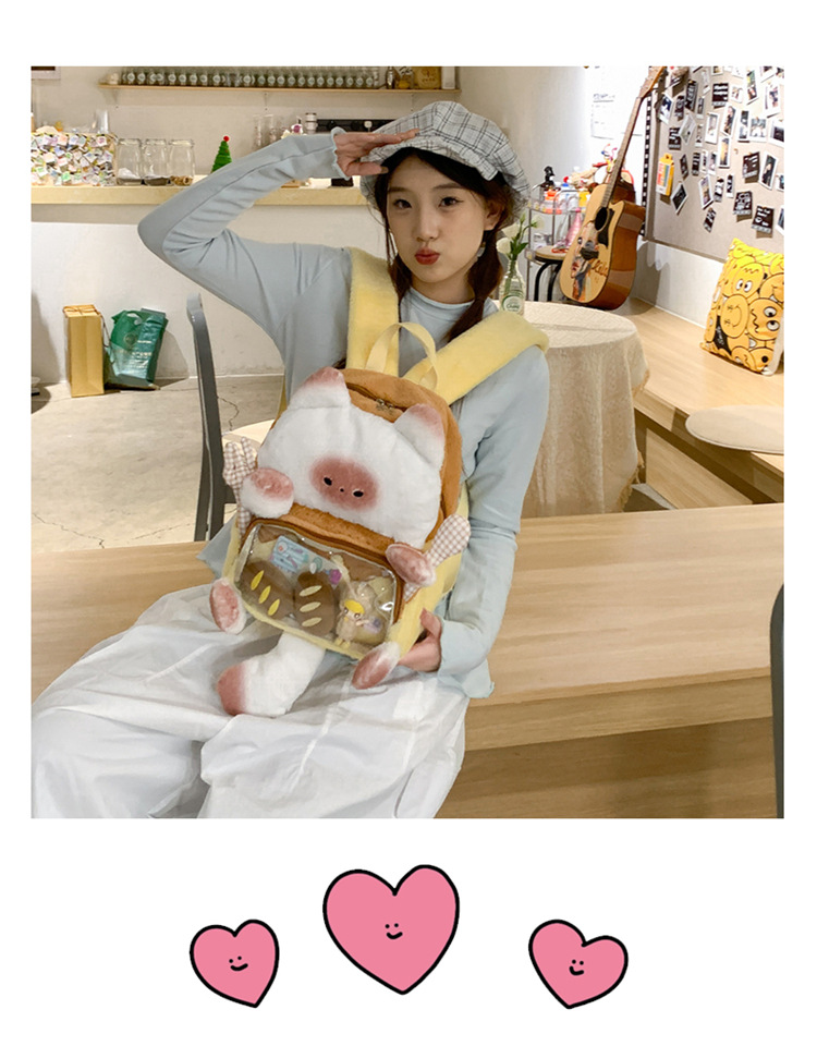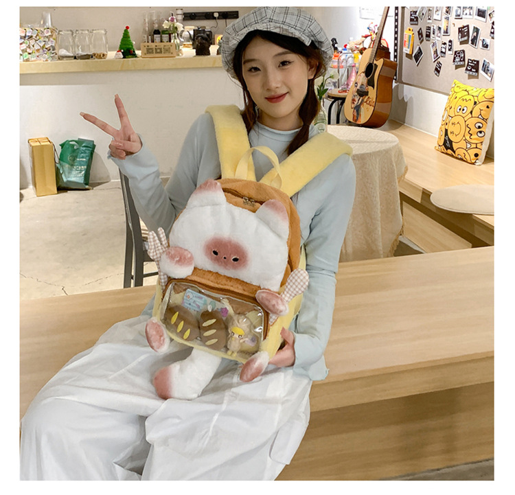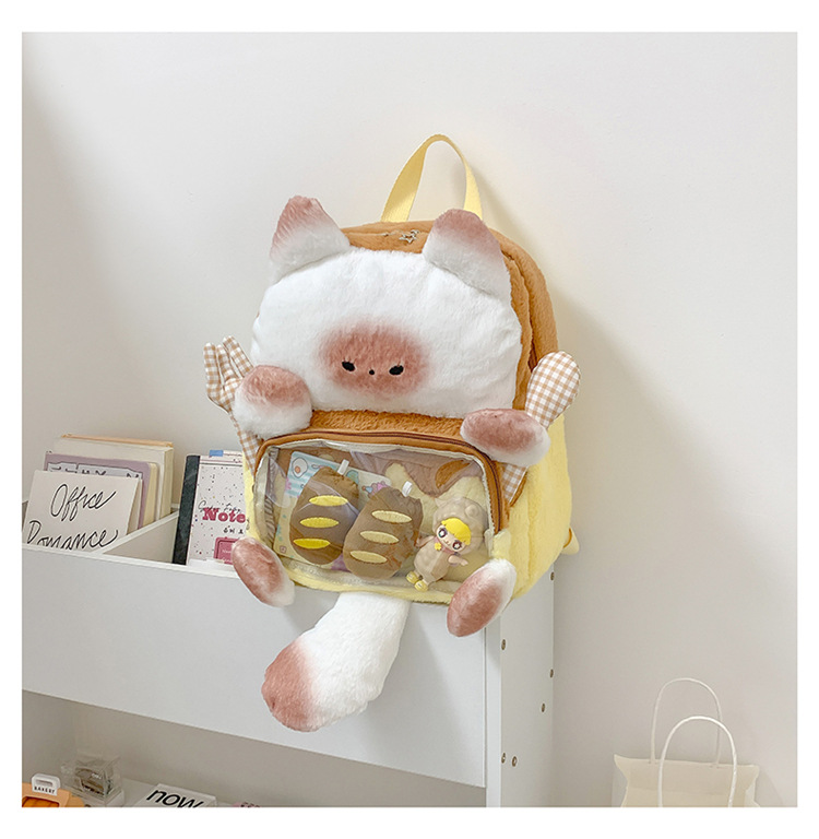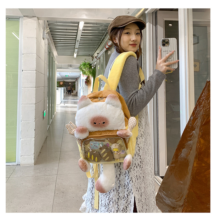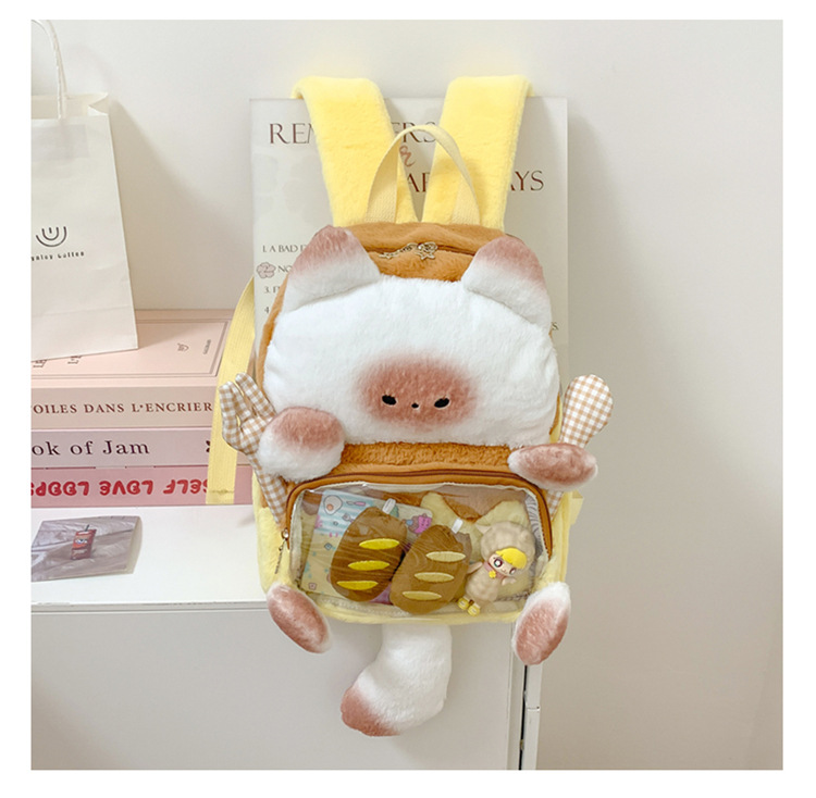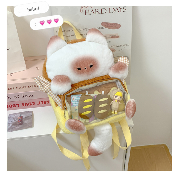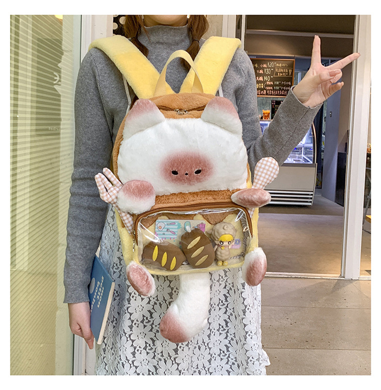 可爱乖巧面包小猫背包少女校园清新可爱双肩包日常卡通大容量背包
