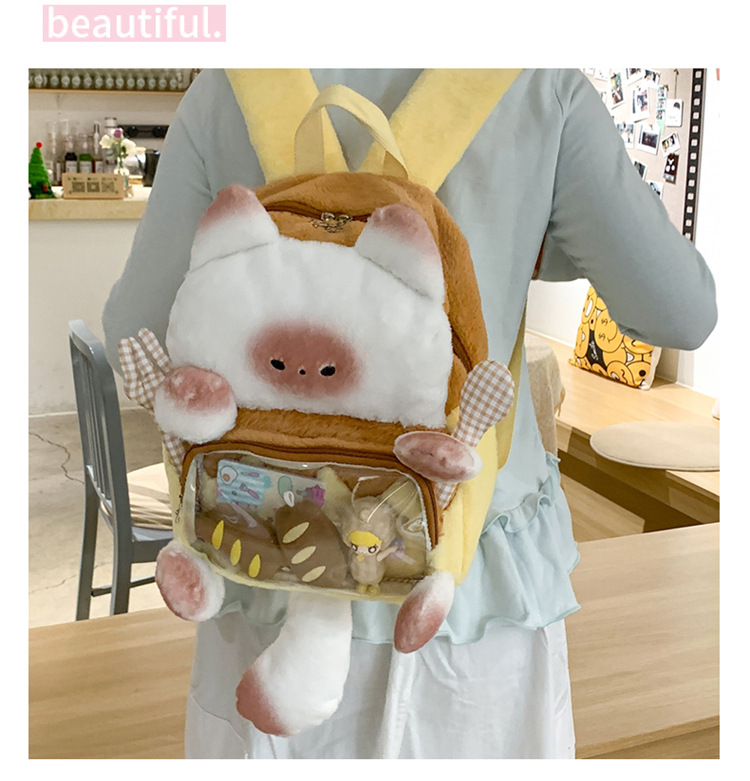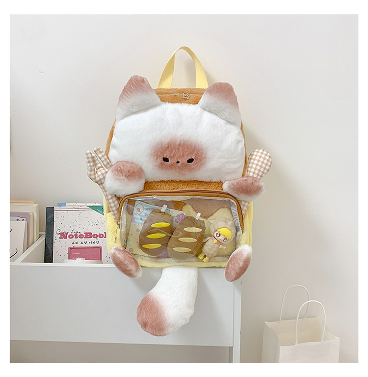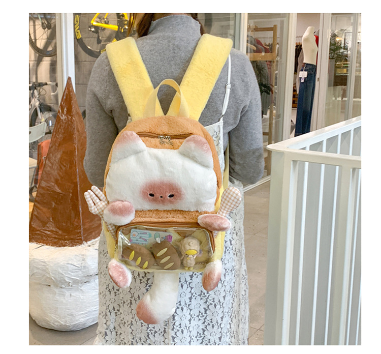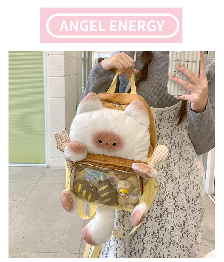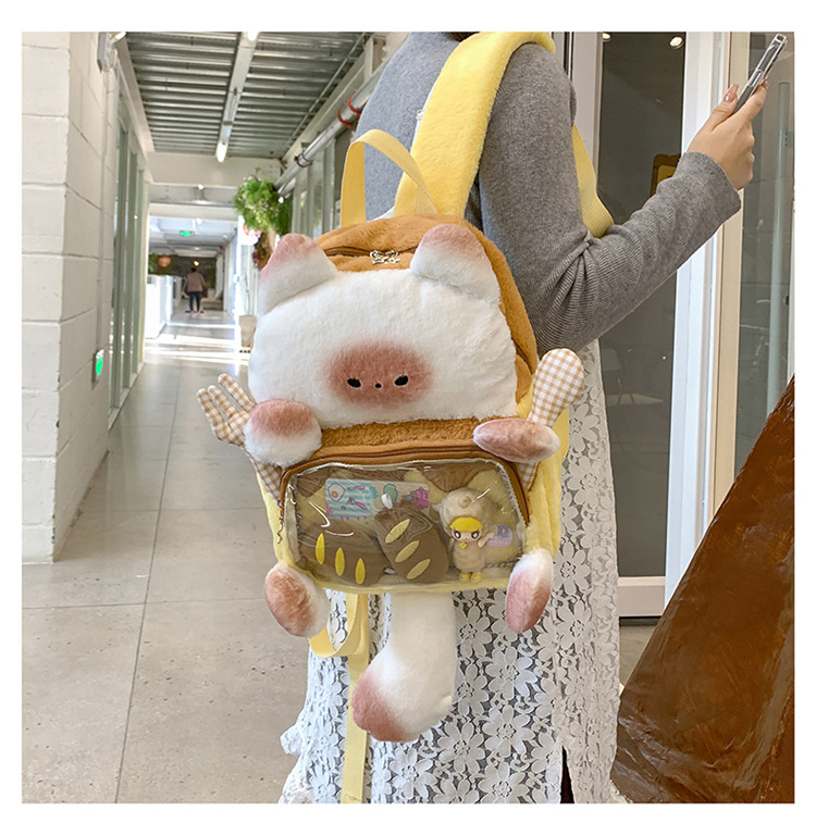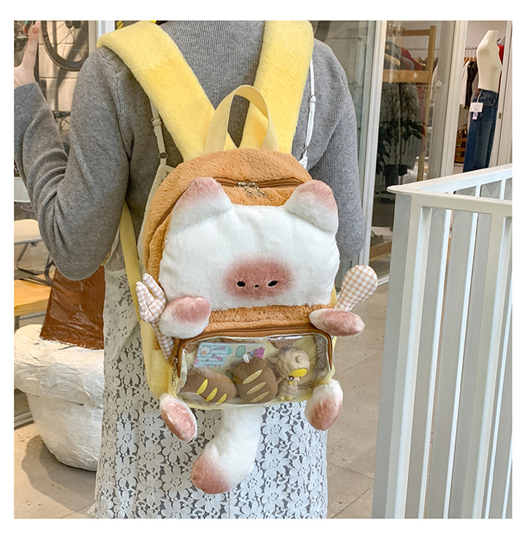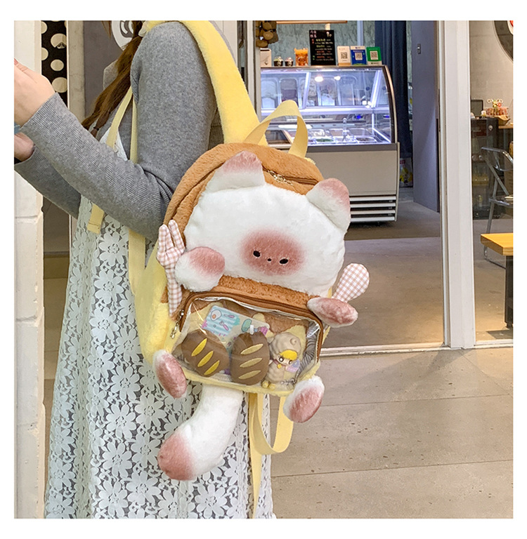 日本イン漫画子供のピンクの猫ぬいぐるみバッグかわいいバックパック大きな白い犬毛皮のようなスクールバッグギフト
