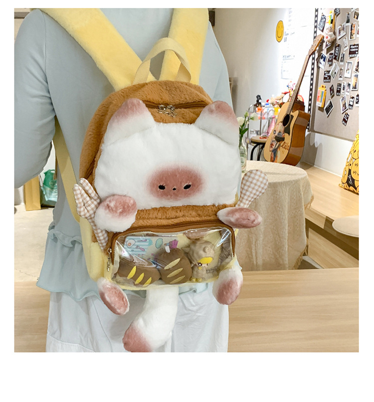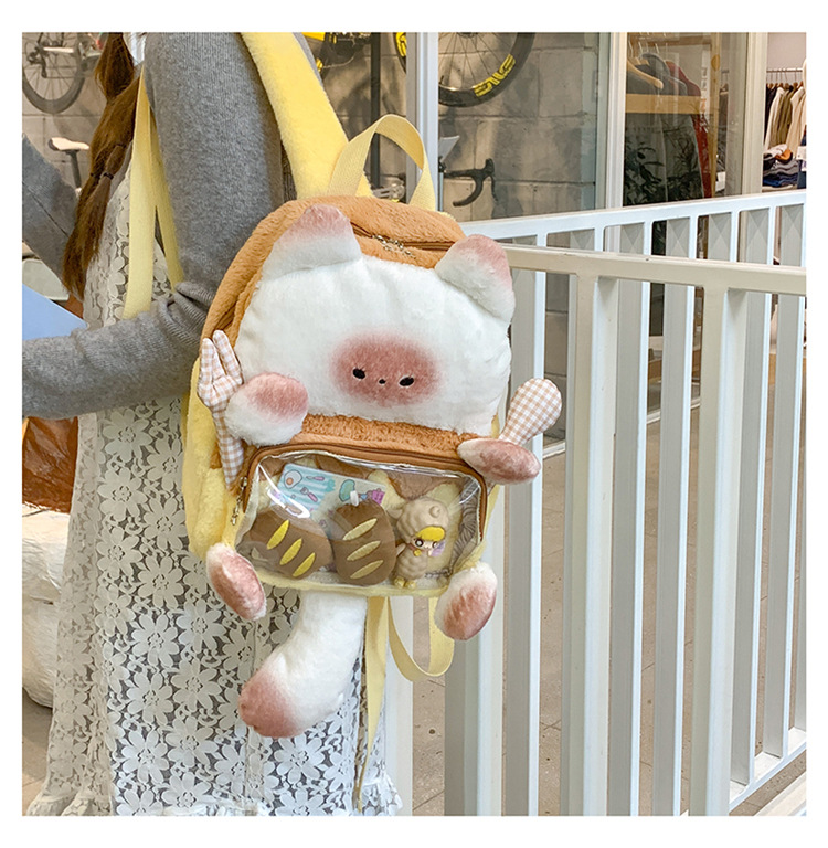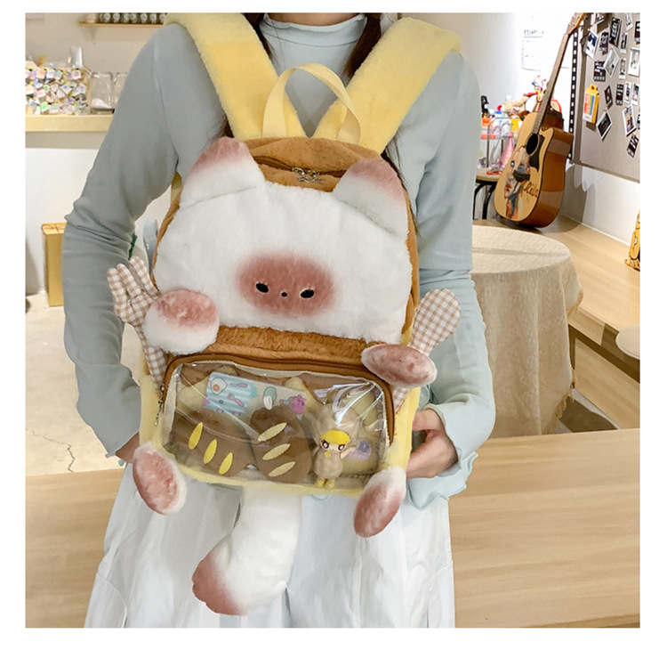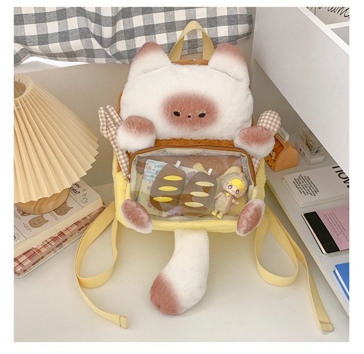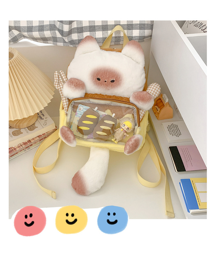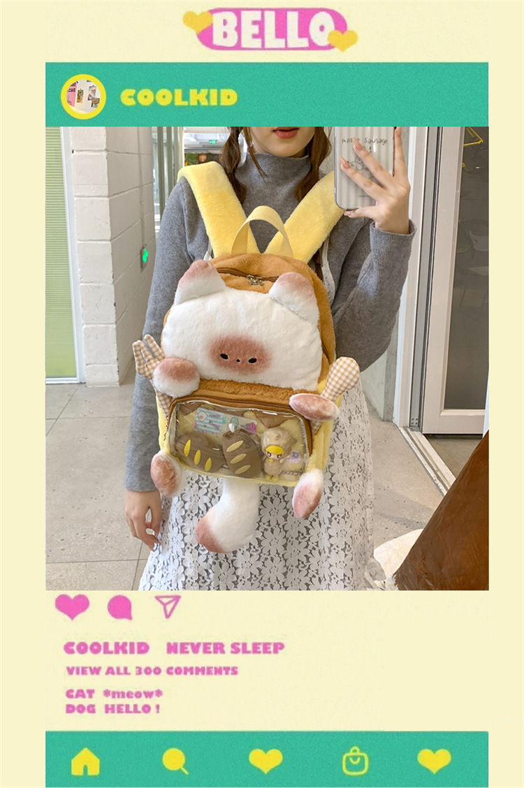 日本イン漫画子供のピンクの猫ぬいぐるみバッグかわいいバックパック大きな白い犬毛皮のようなスクールバッグギフト