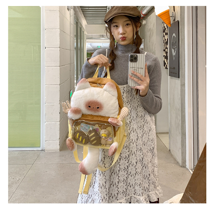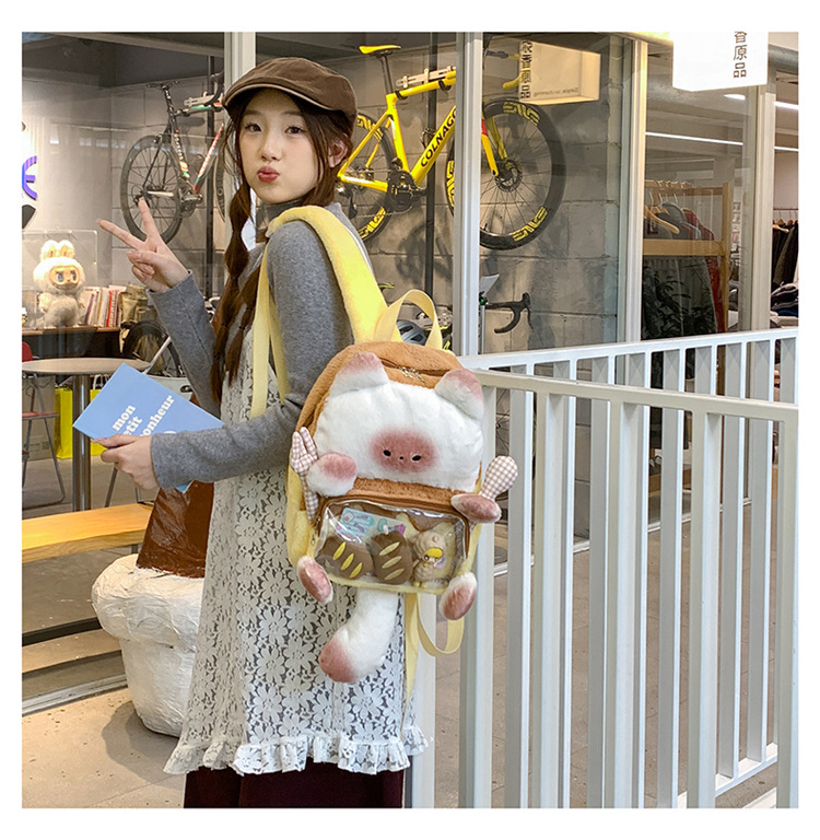 日本系insかわいい秋冬のぬいぐるみがランドセルをめくっている女性2024大容量のかわいい甘いランドセルの女性バックパック