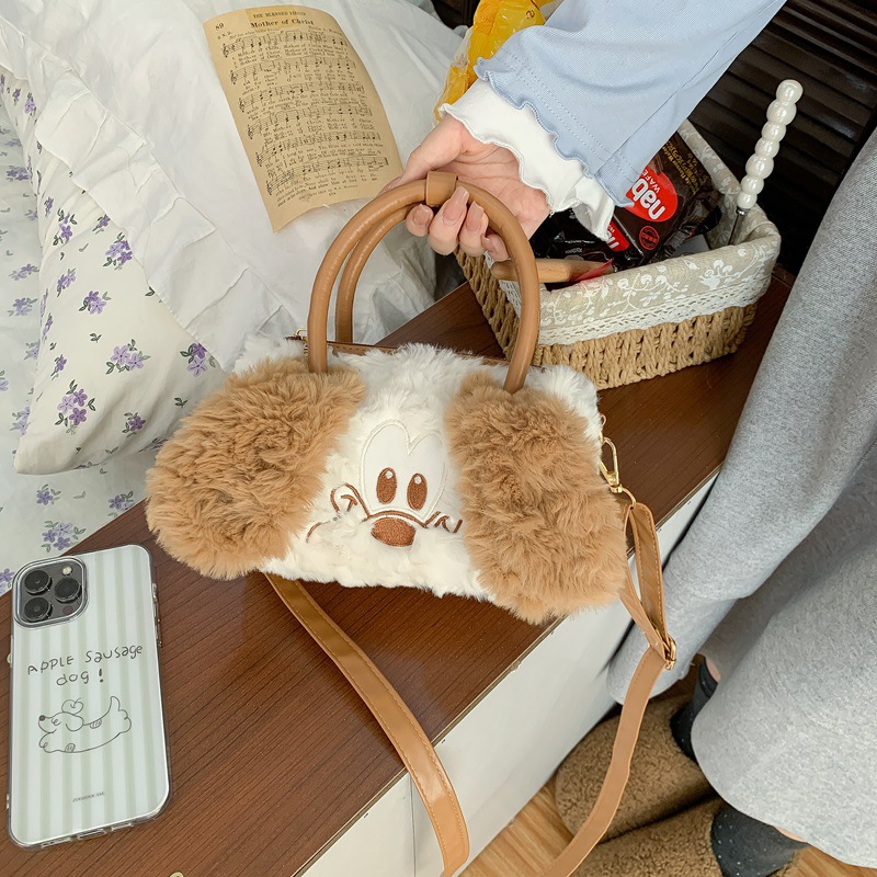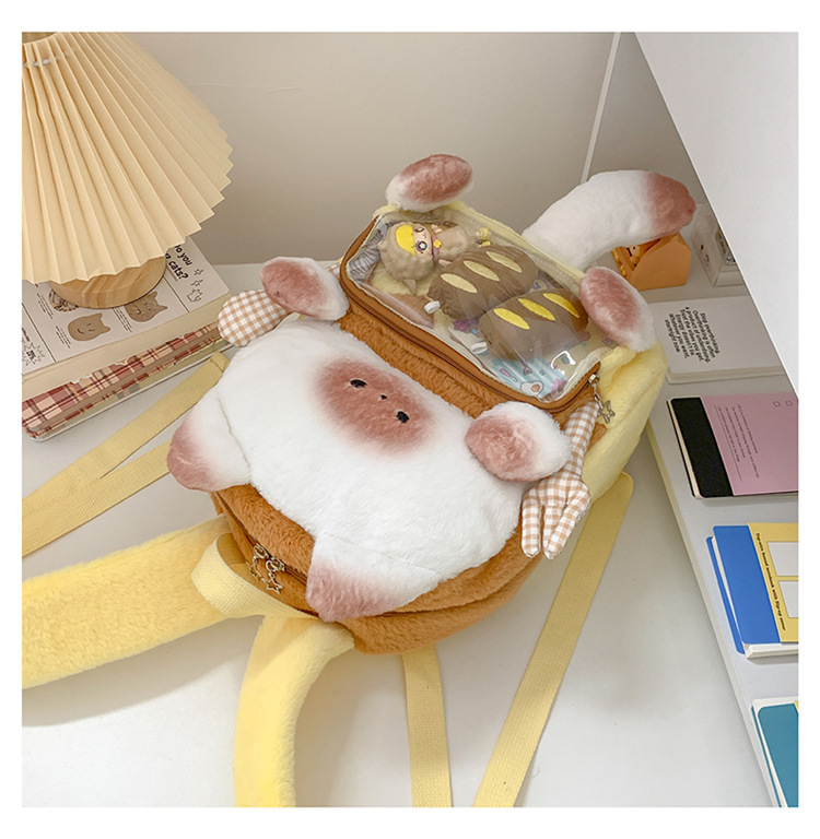 高颜值软萌长耳朵狗狗毛绒小背包卡通女生包包休闲便携单肩斜挎包