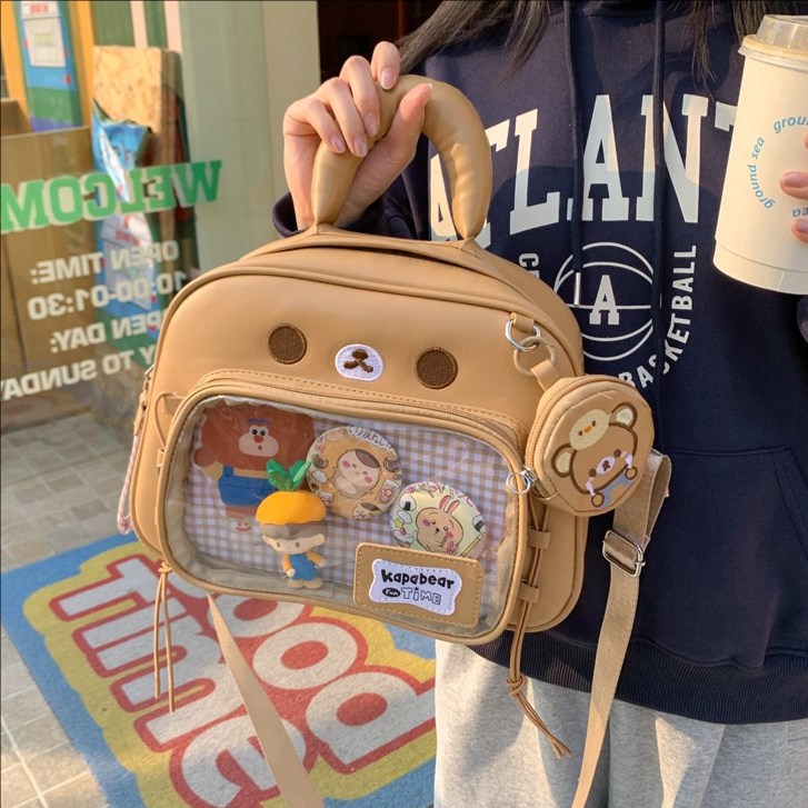 日系可爱卡通小熊双肩包二次元吧唧谷子包大容量女生便携透明痛包