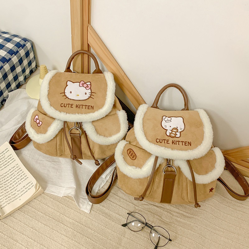 超火洋气猫咪翻盖双肩包小众设计麂皮绒小背包高颜值软萌休闲包包