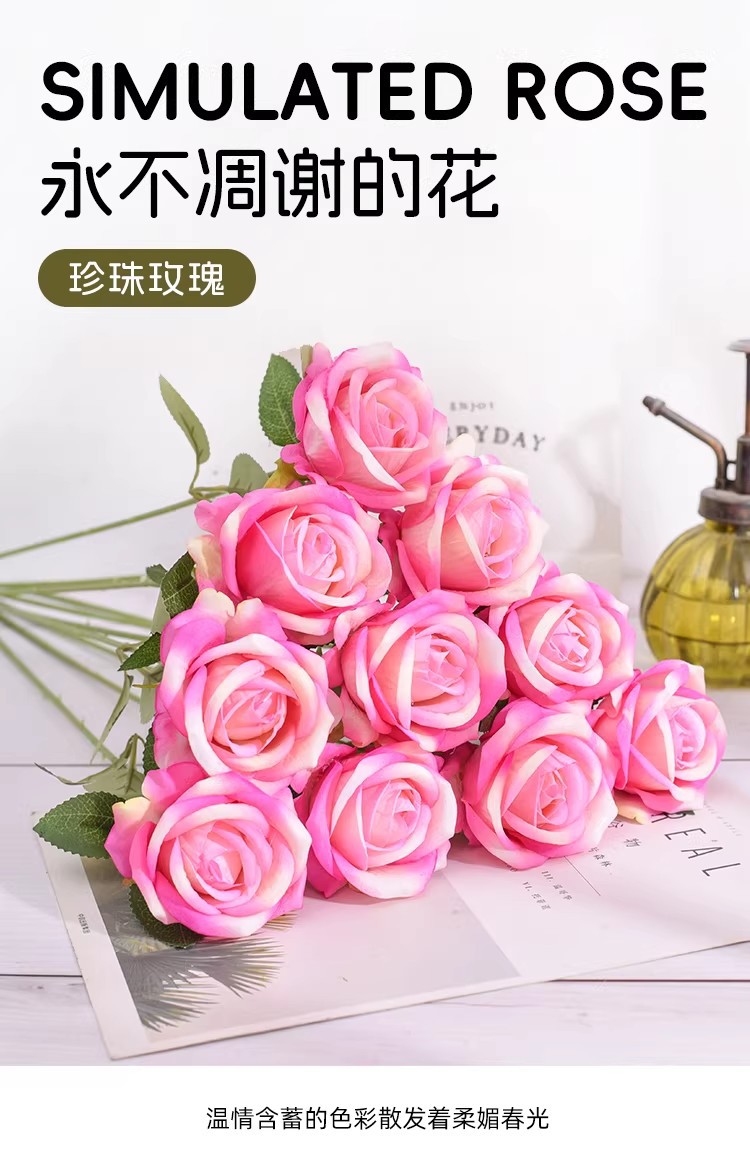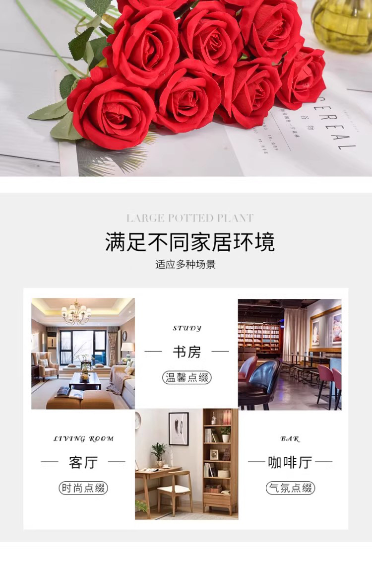 高仿真芬达拉玫瑰花客厅餐厅酒店装饰情人节婚庆拍摄道具仿真假花