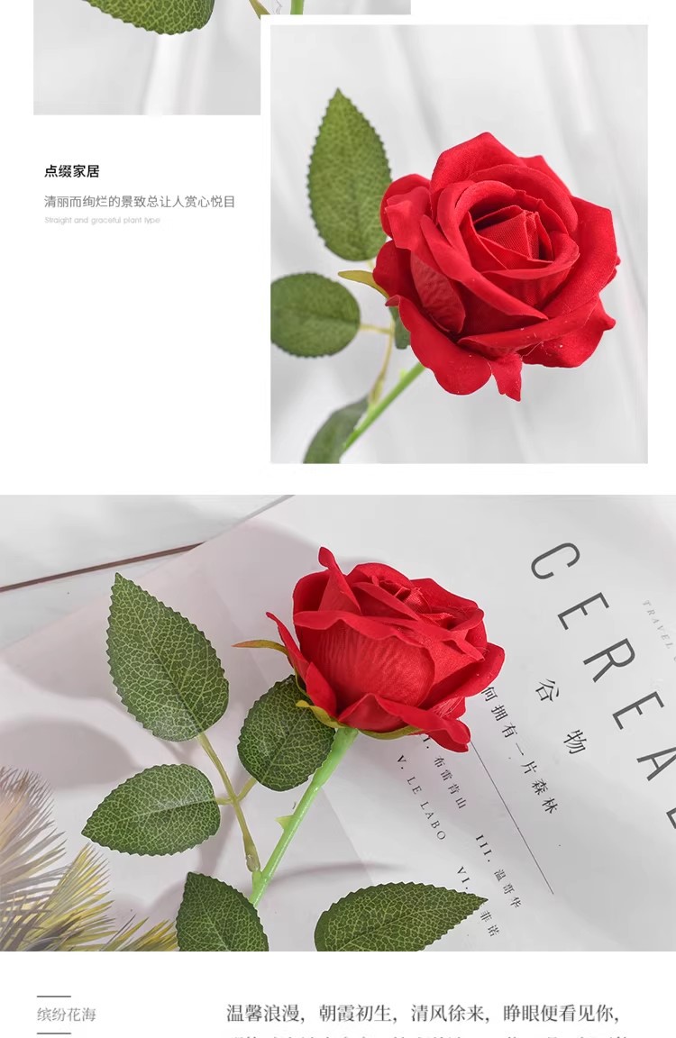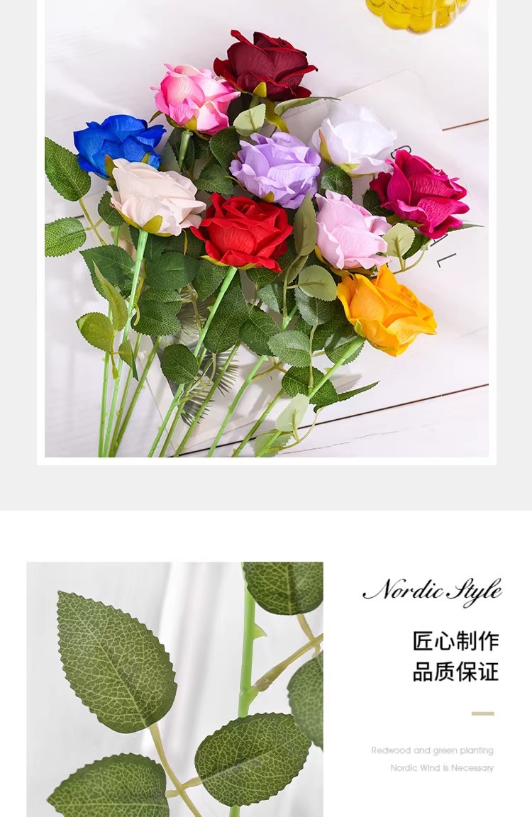 仿真花单支玫瑰花绒布婚礼情人节手感假花家居场景布置装饰花批发