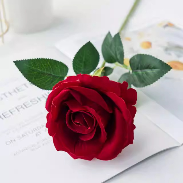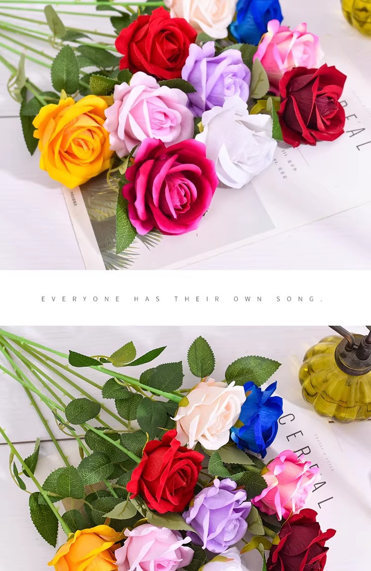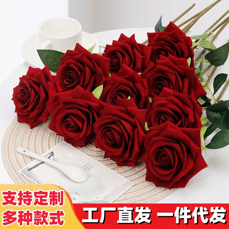ベルベット模擬バラ卸売単一造花人工シルクフラワー結婚式ホームバレンタインデー装飾花束壁