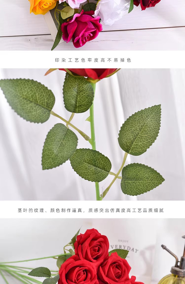 仿真玫瑰花束单支假花婚庆家居装饰花插花情人节装饰手感绒布玫瑰