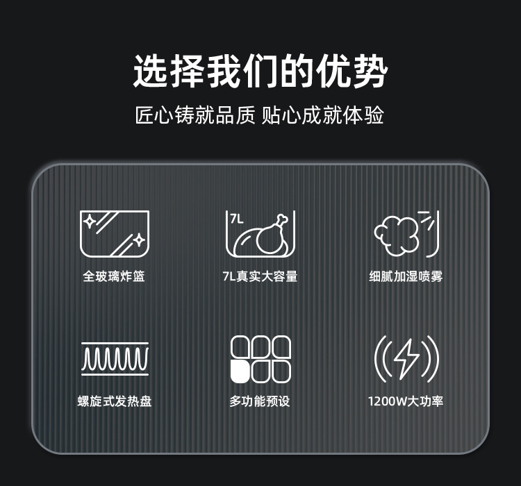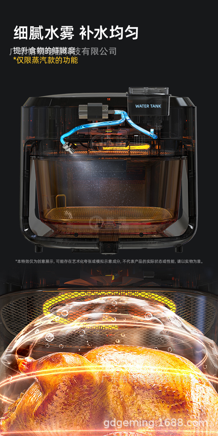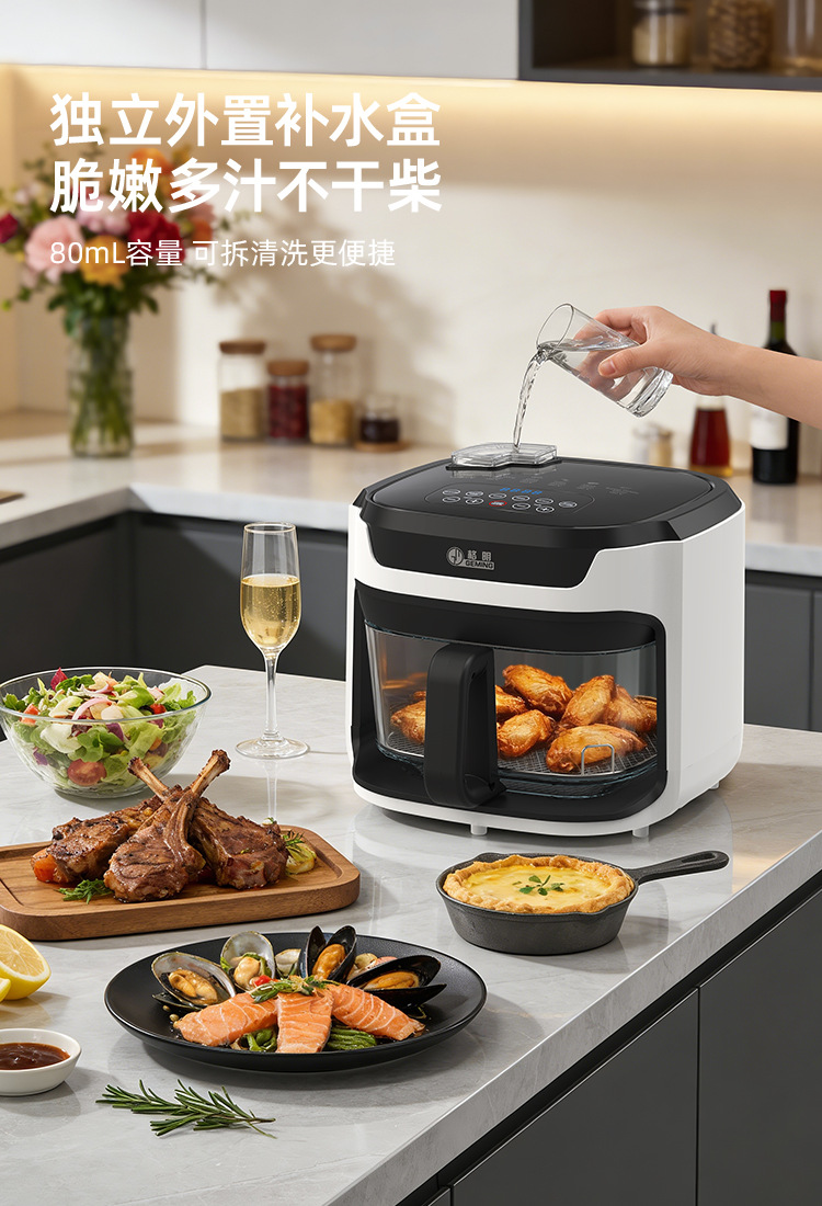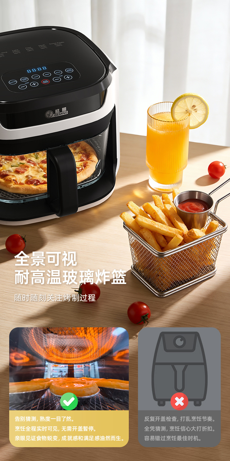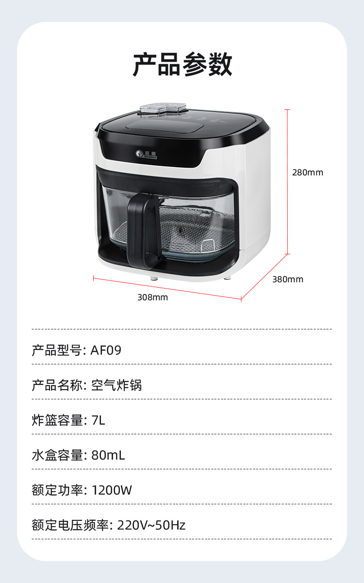 格明蒸汽7L空气炸锅家用多功能大容量电烤箱一体玻璃内胆跨境出口