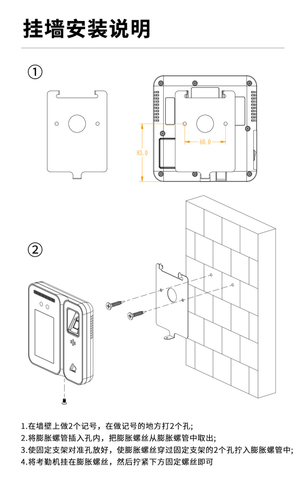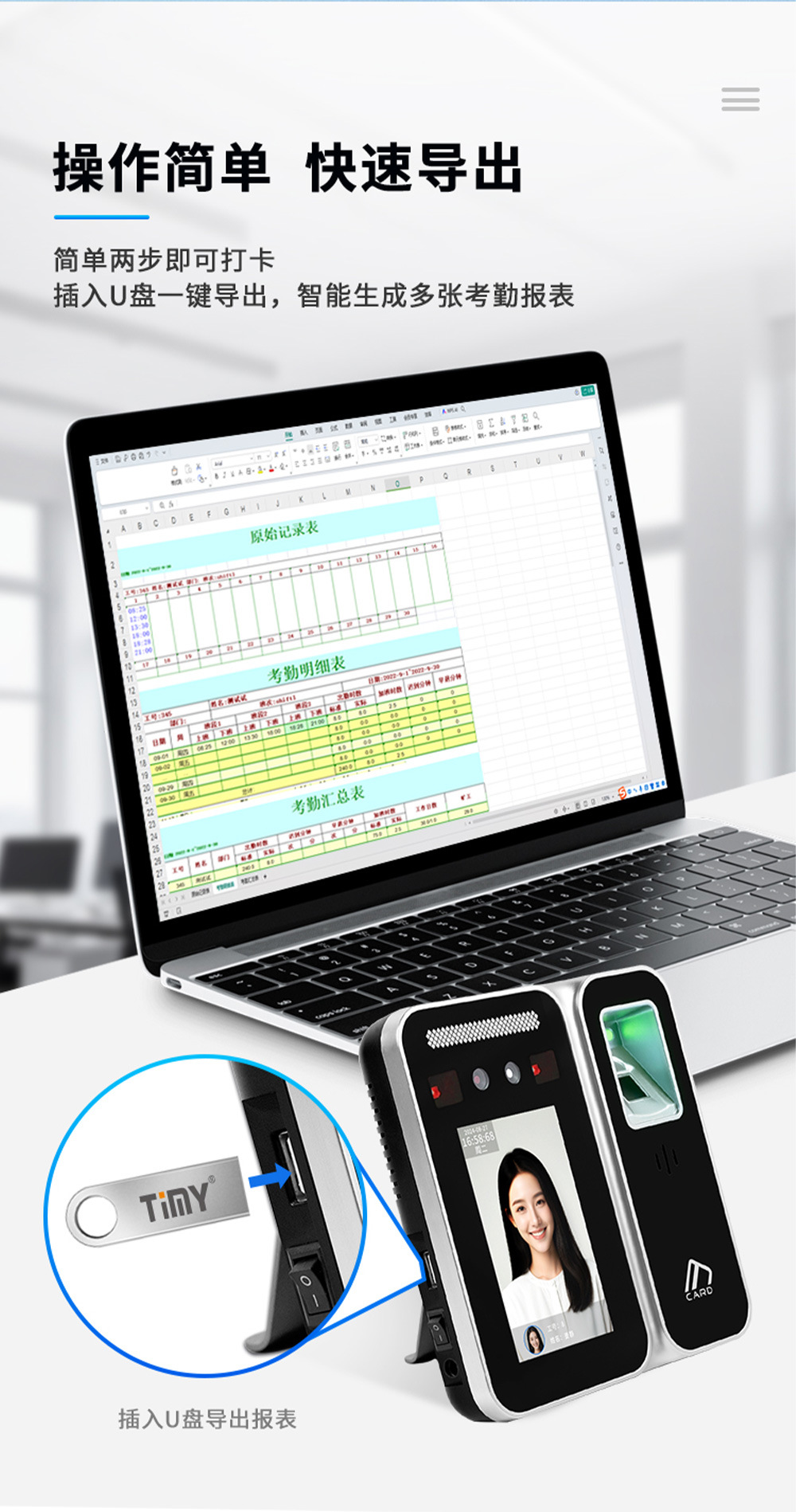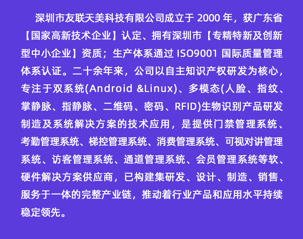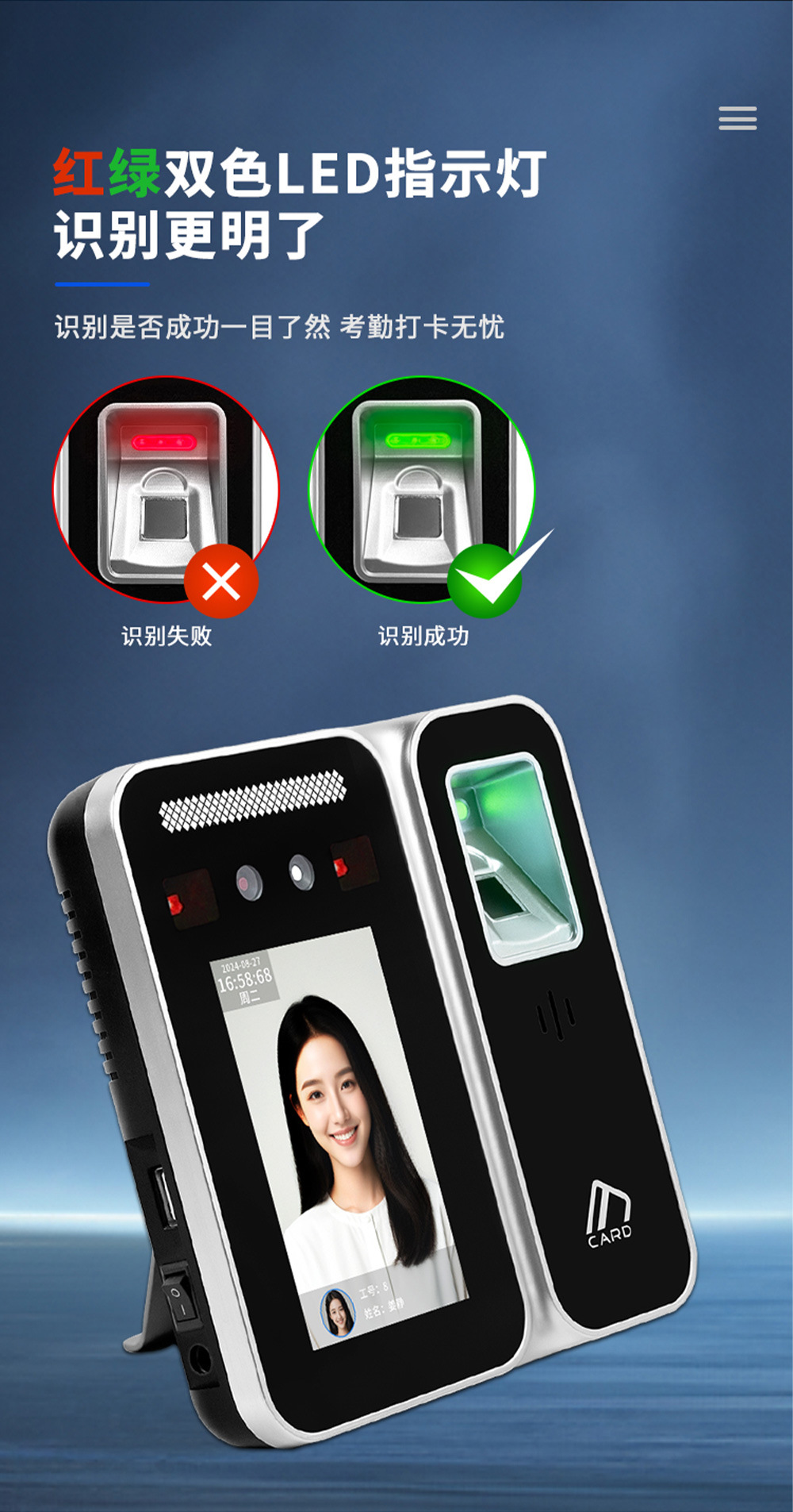存储量 人脸容量:5000张标配、指纹容量:10000枚标配、密码容量:15000标配、刷卡容量:15000