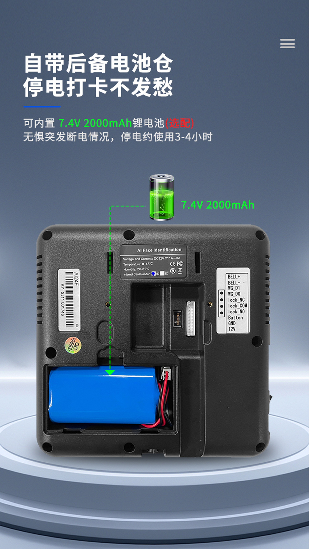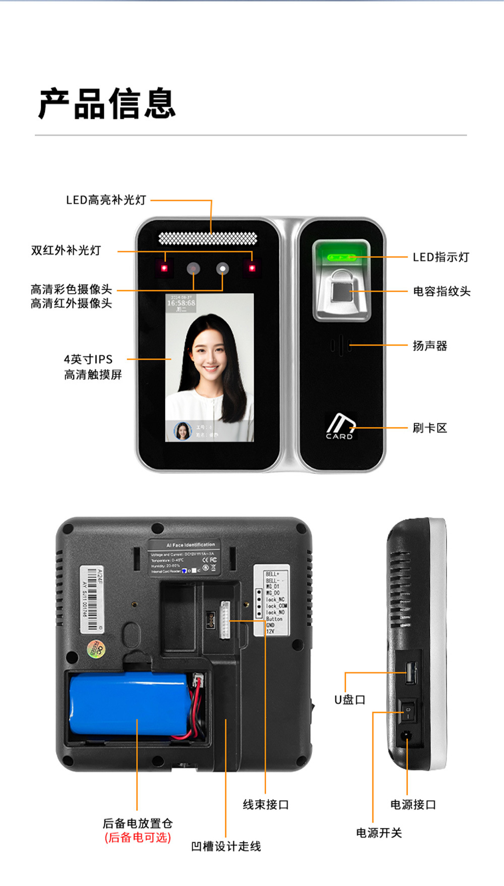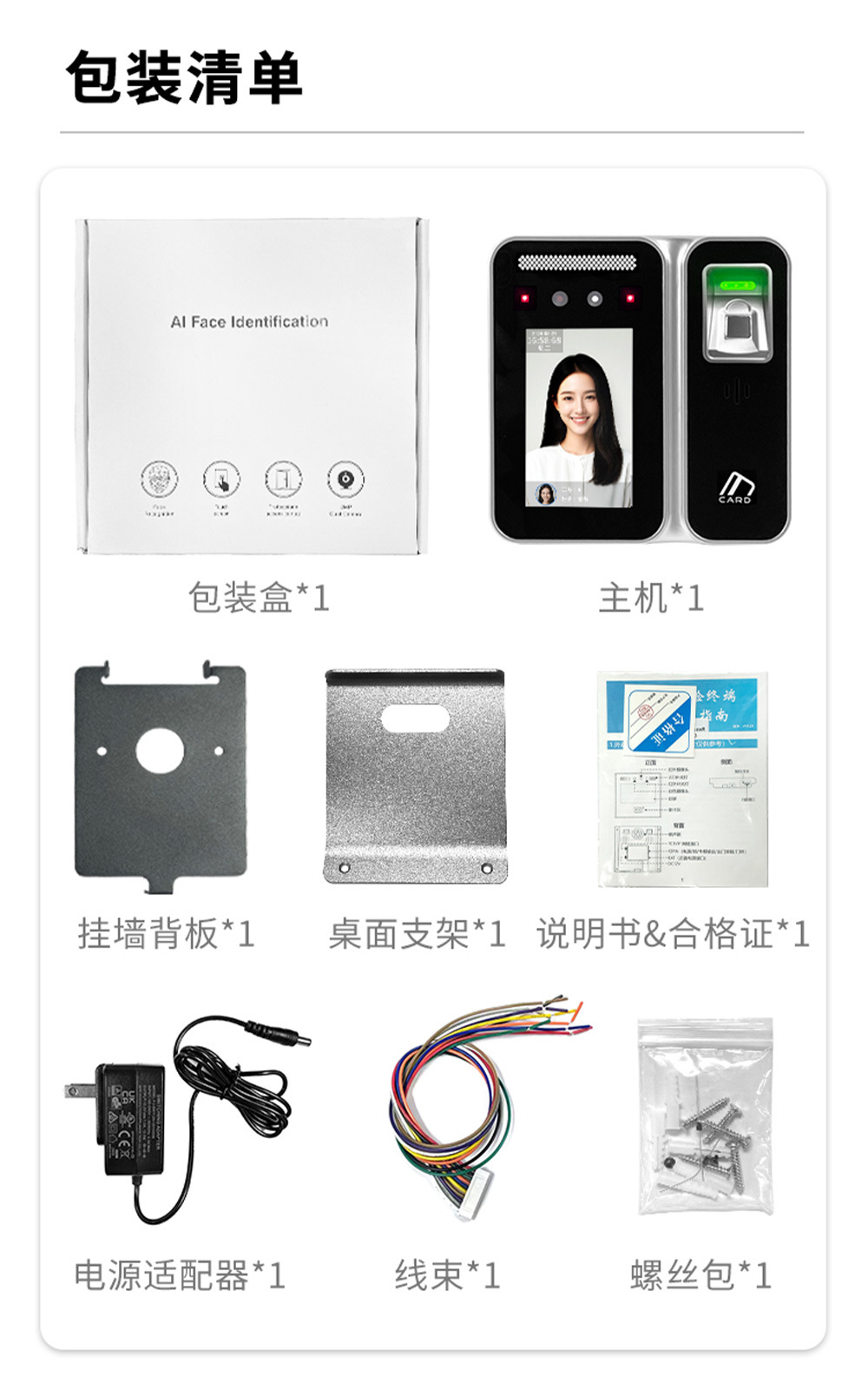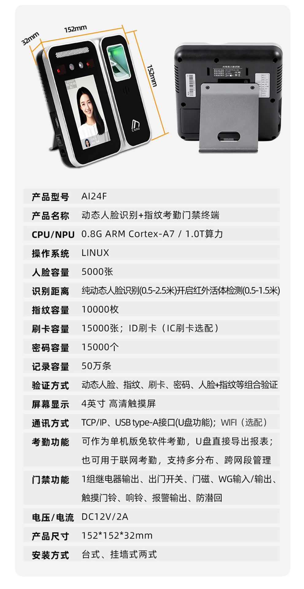 规格 TM-AI 24F 动态人脸识别+指纹考勤门禁终端电源,TM-AI 24F 动态人脸识别+指纹考勤门禁终端