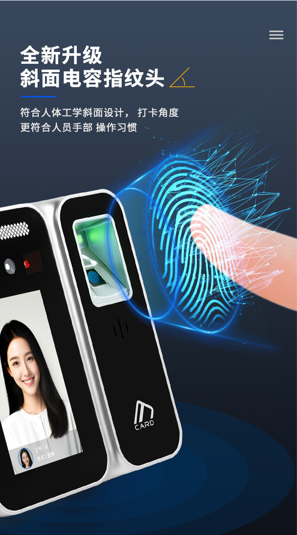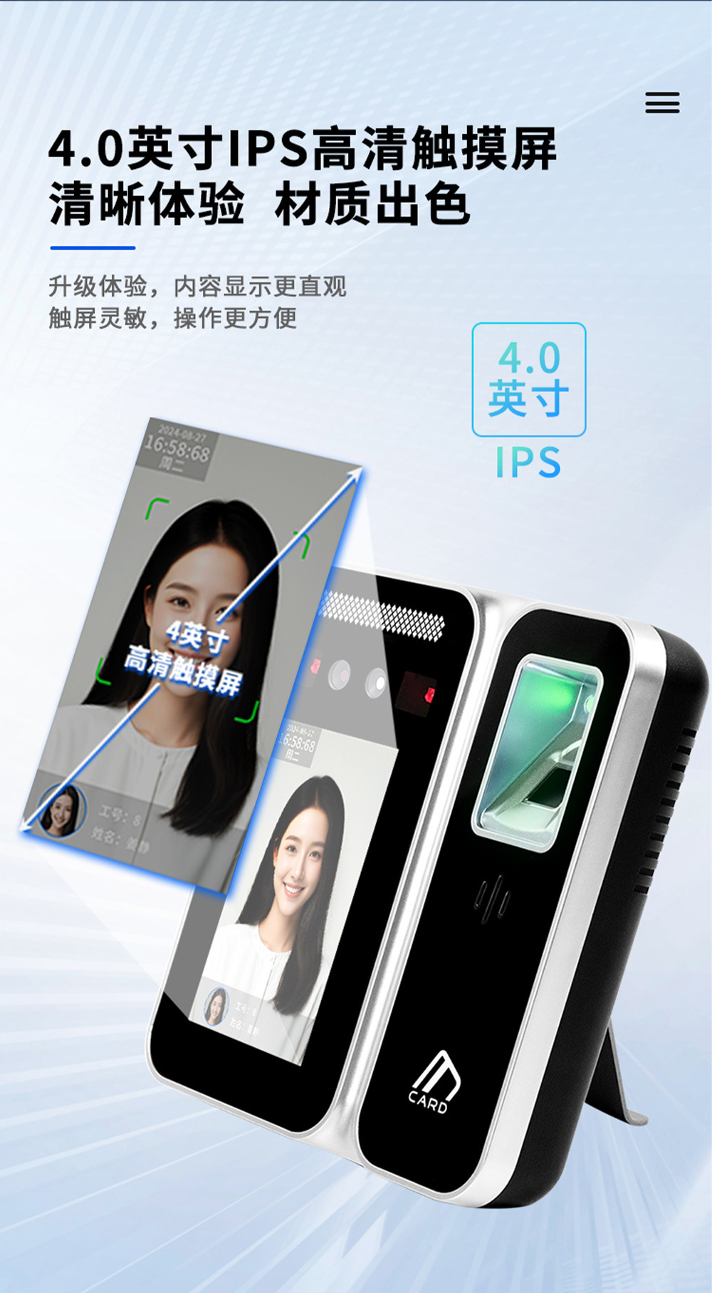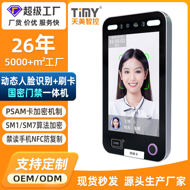新款门禁系统一体机考勤 AI18EFG 动态人脸指纹识别国密门禁系统