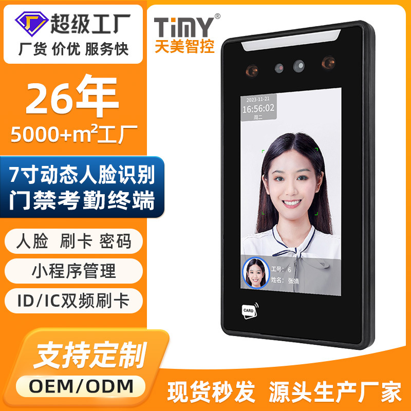 新款动态人脸指纹识别门禁考勤终端AI 11F人脸识别门禁考勤一体机