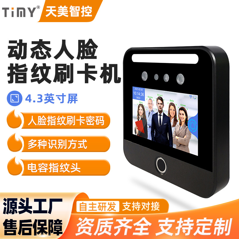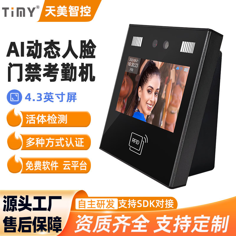4.3インチAIダイナミック顔出勤ゲート認識端末AI11カードパスワード顔認識勤務ゲート