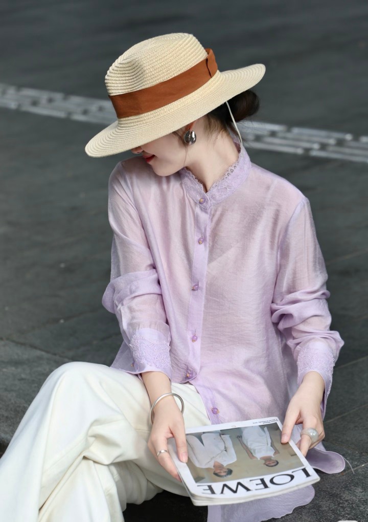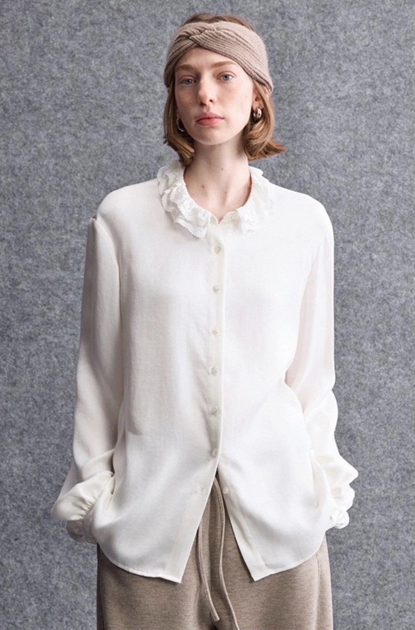 26早春新款轻奢法式砂洗雾感柔莱赛尔双层花瓣领衬衫146