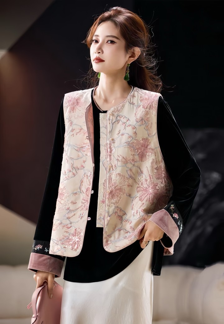 26早春新款新中式高级刺绣钉珠马甲简约圆领国风上衣146