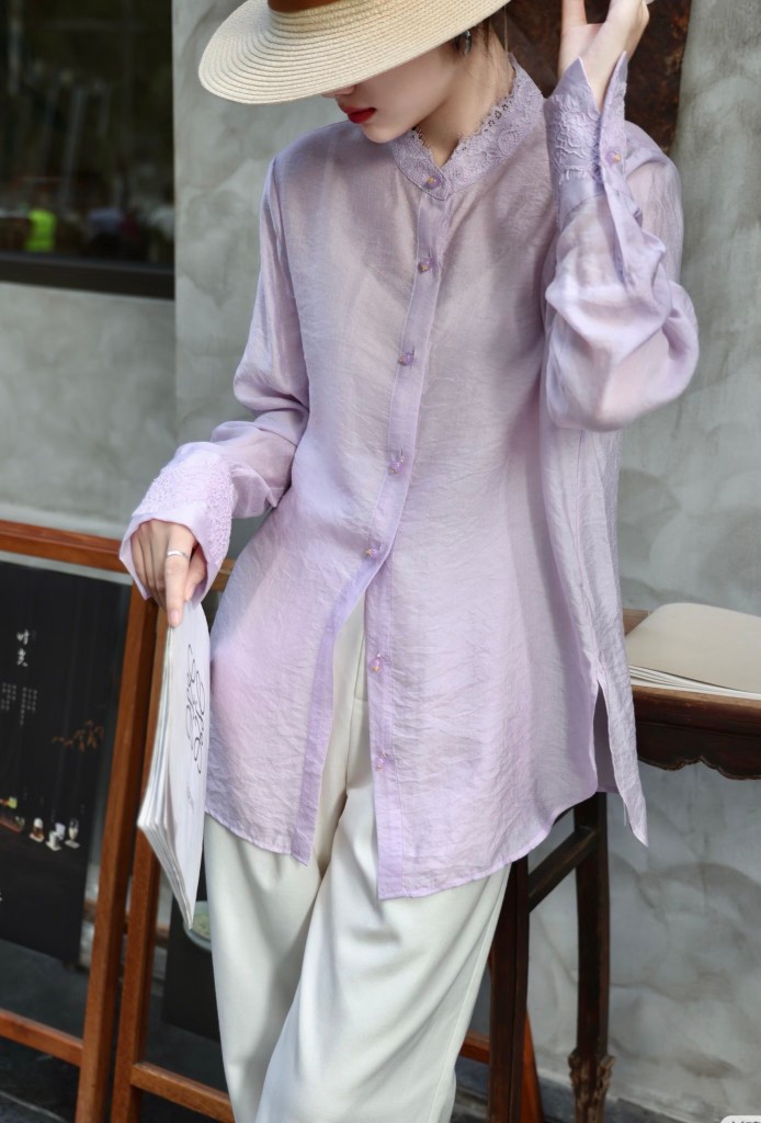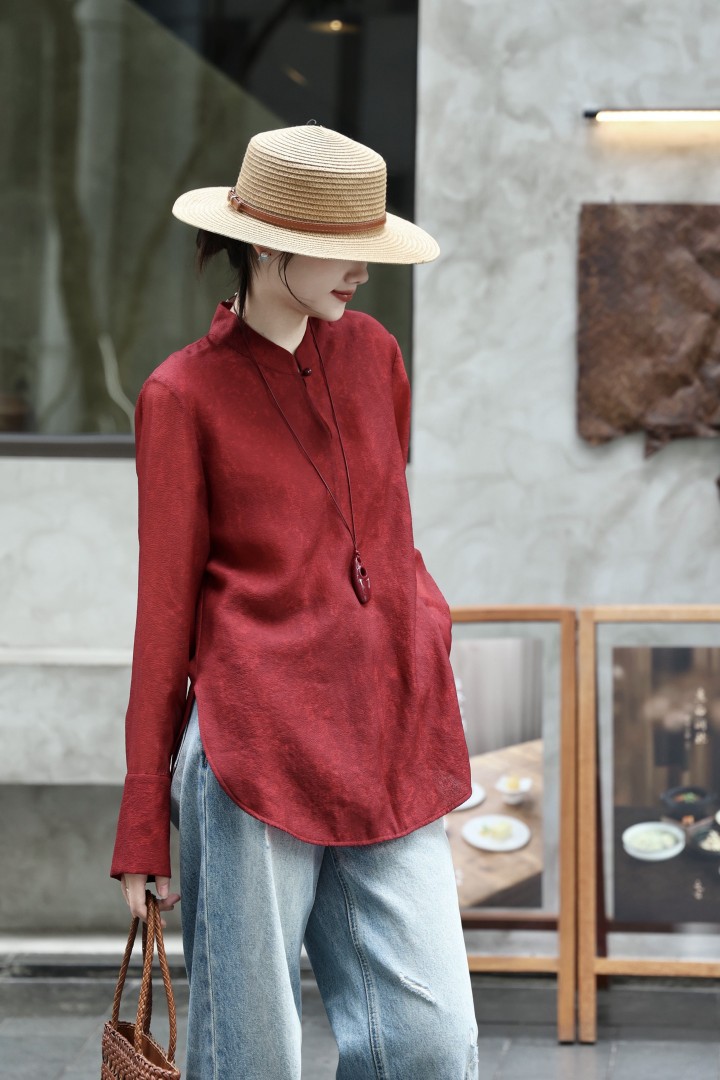 26早春新款轻奢简约新中式小立领长袖衬衫国风打底衫22