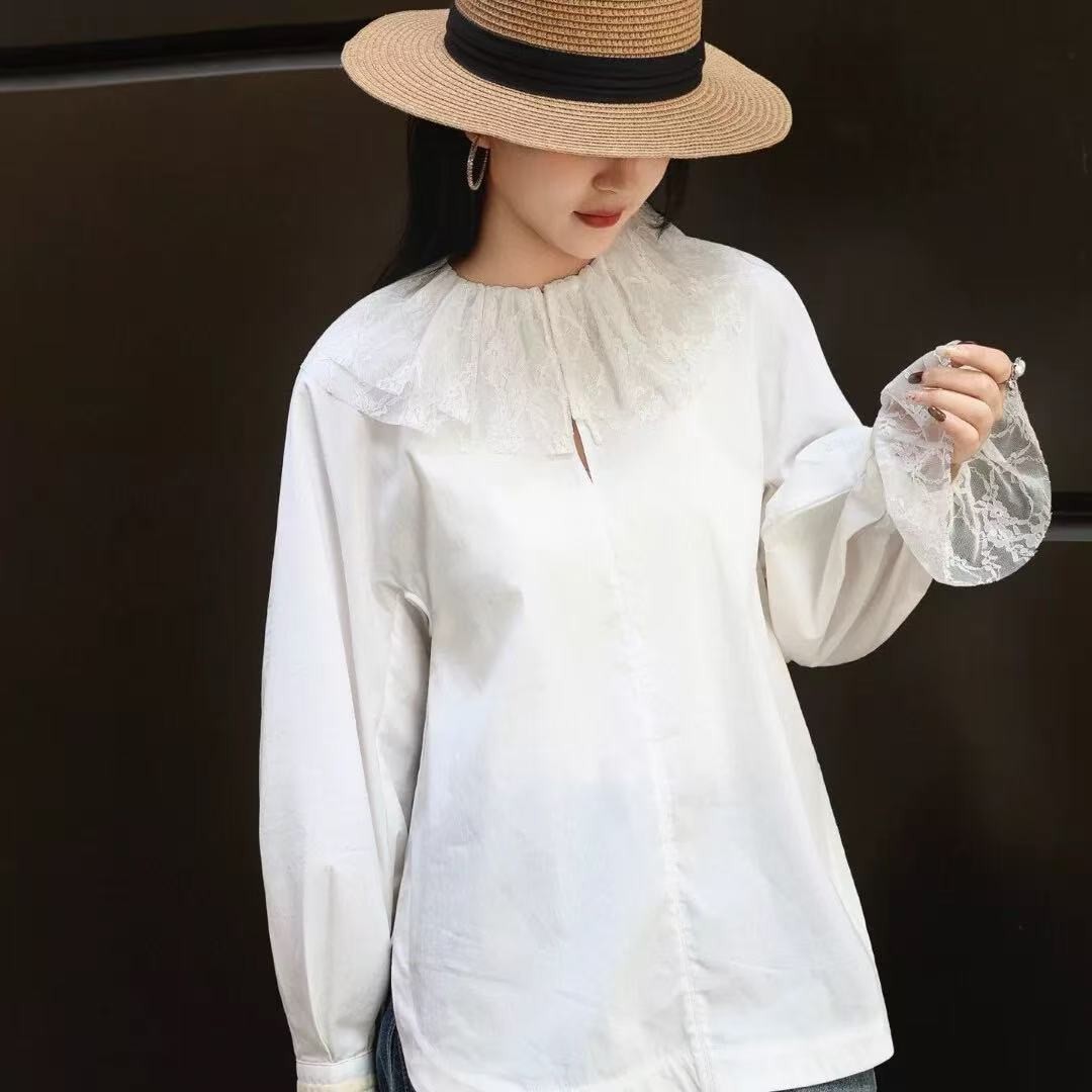 2026春新款时尚洋气刺绣花边领蕾丝袖百搭减龄衬衣141