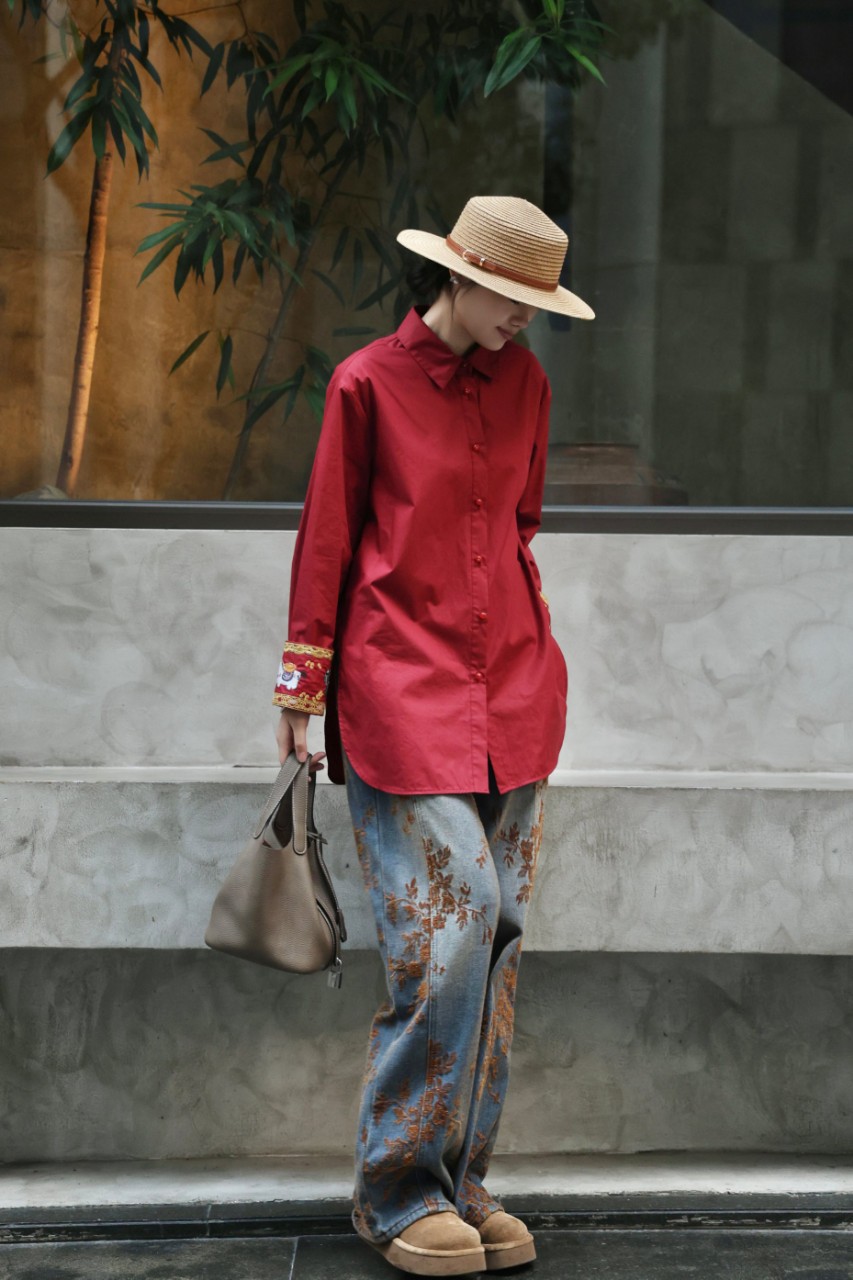 26早春新款轻奢优雅时尚国风重工绣小马府绸棉衬衫31