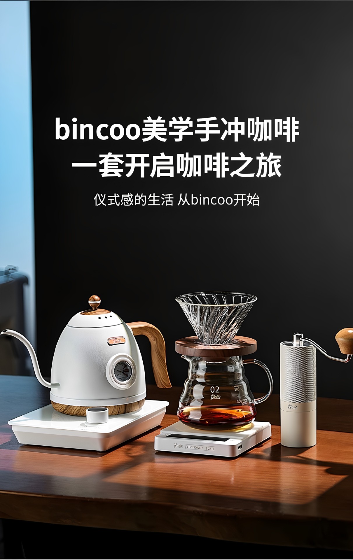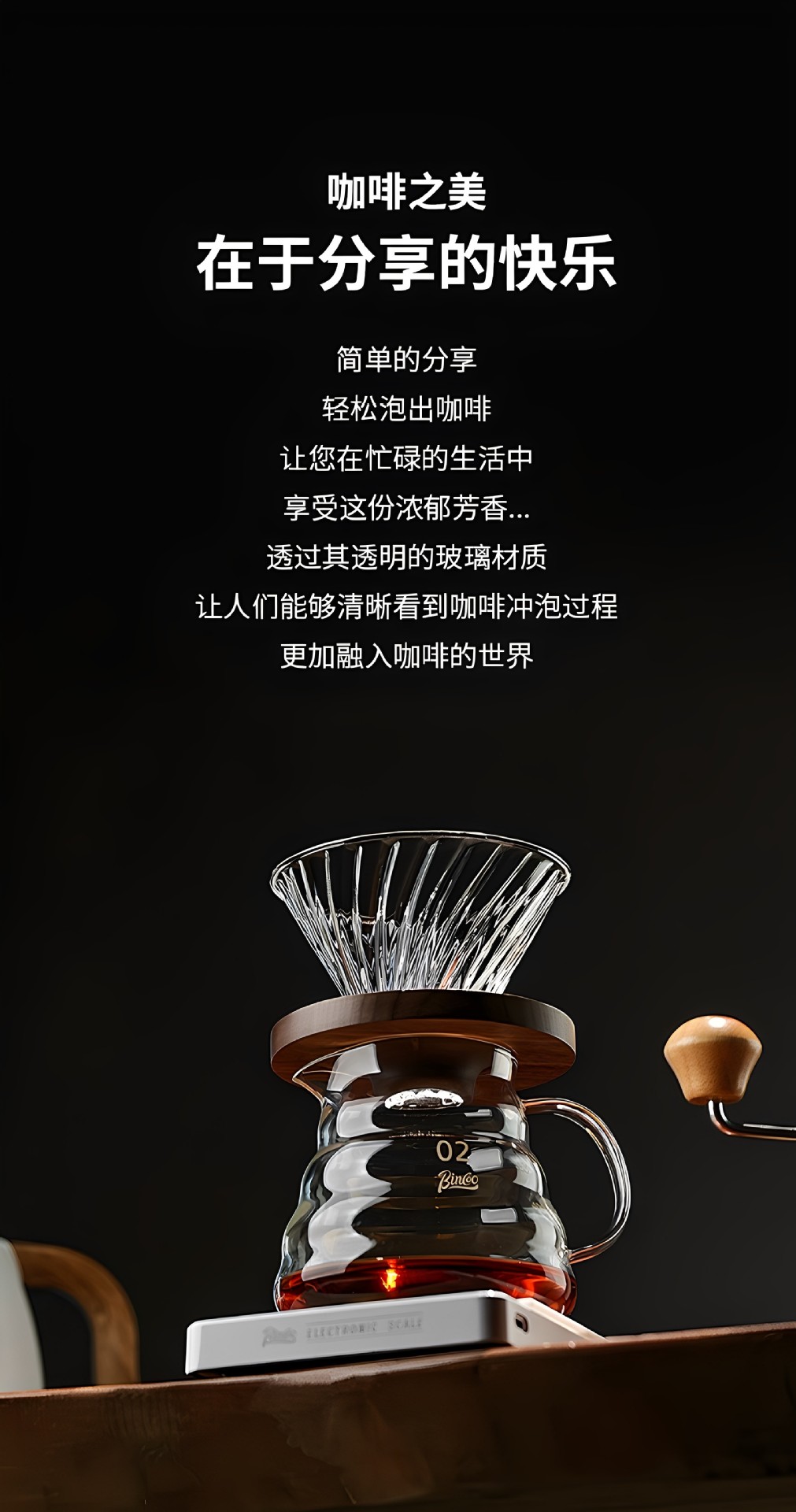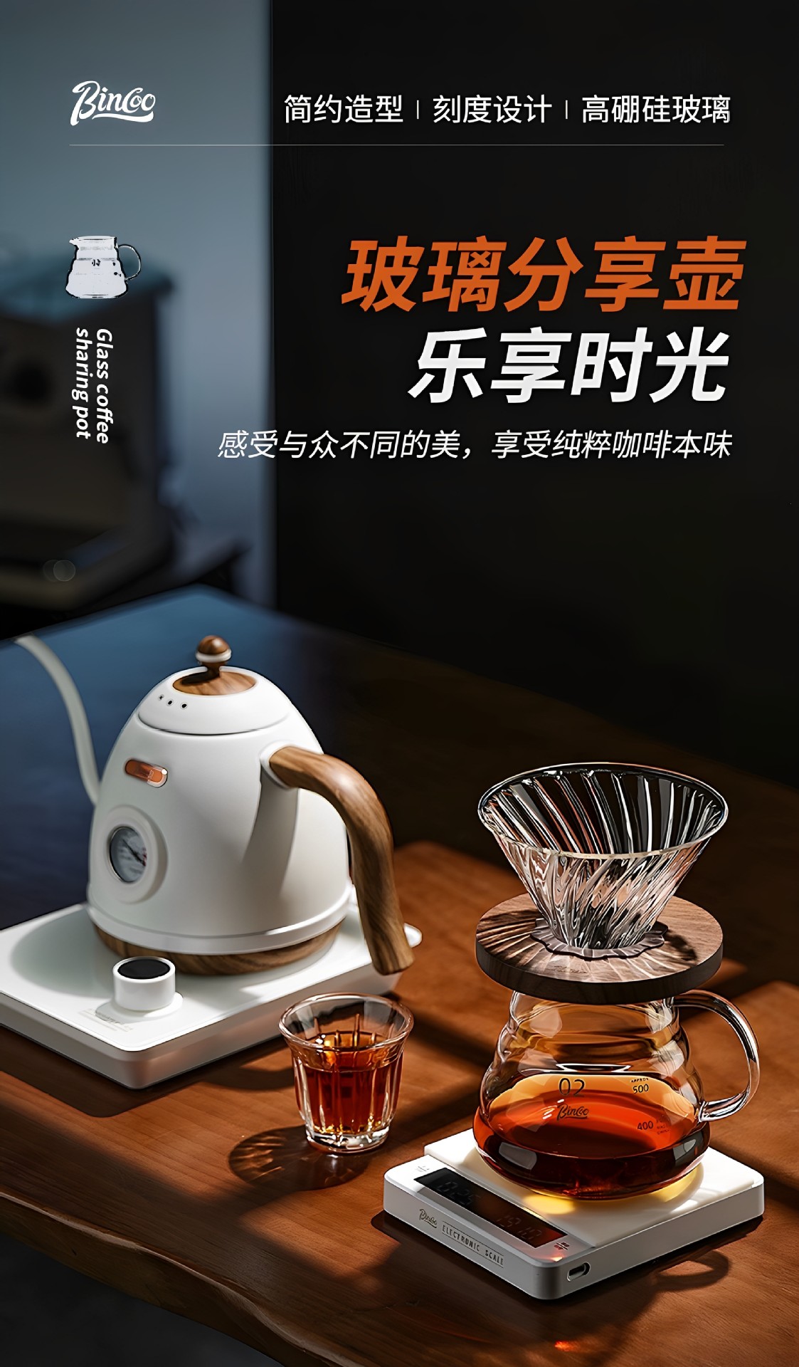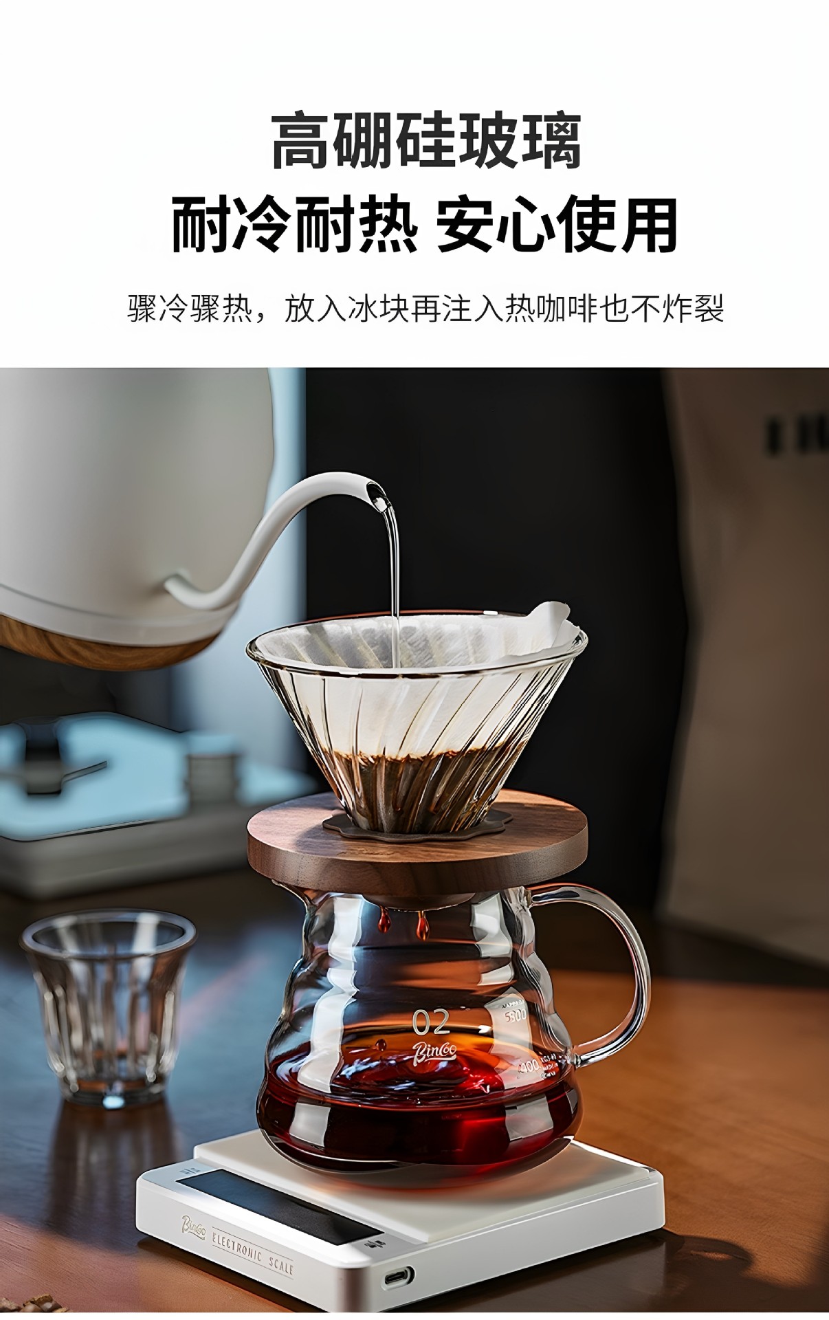 Bincoo温控手冲咖啡套装玻璃分享壶V60滤杯手磨全套萃取冲泡器具