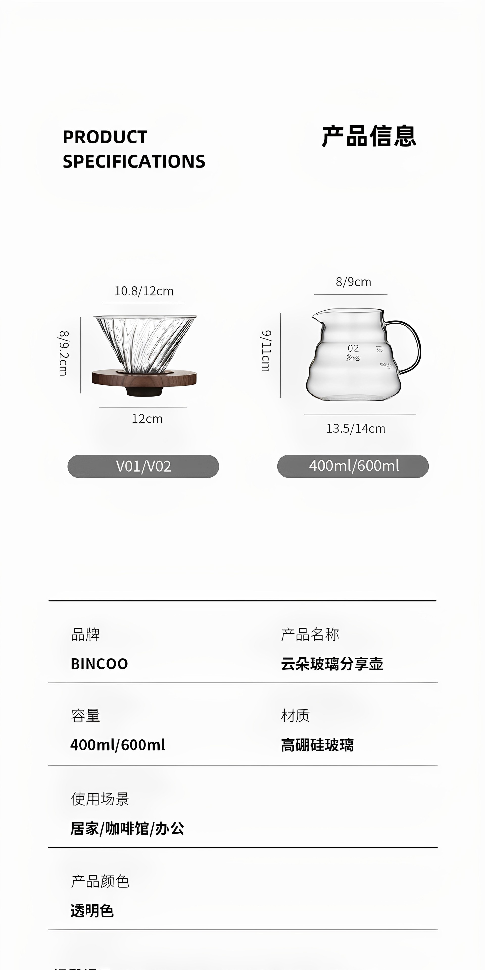 Bincoo手冲咖啡滤杯v60高硼硅玻璃耐热耐高温咖啡器具分享壶套装