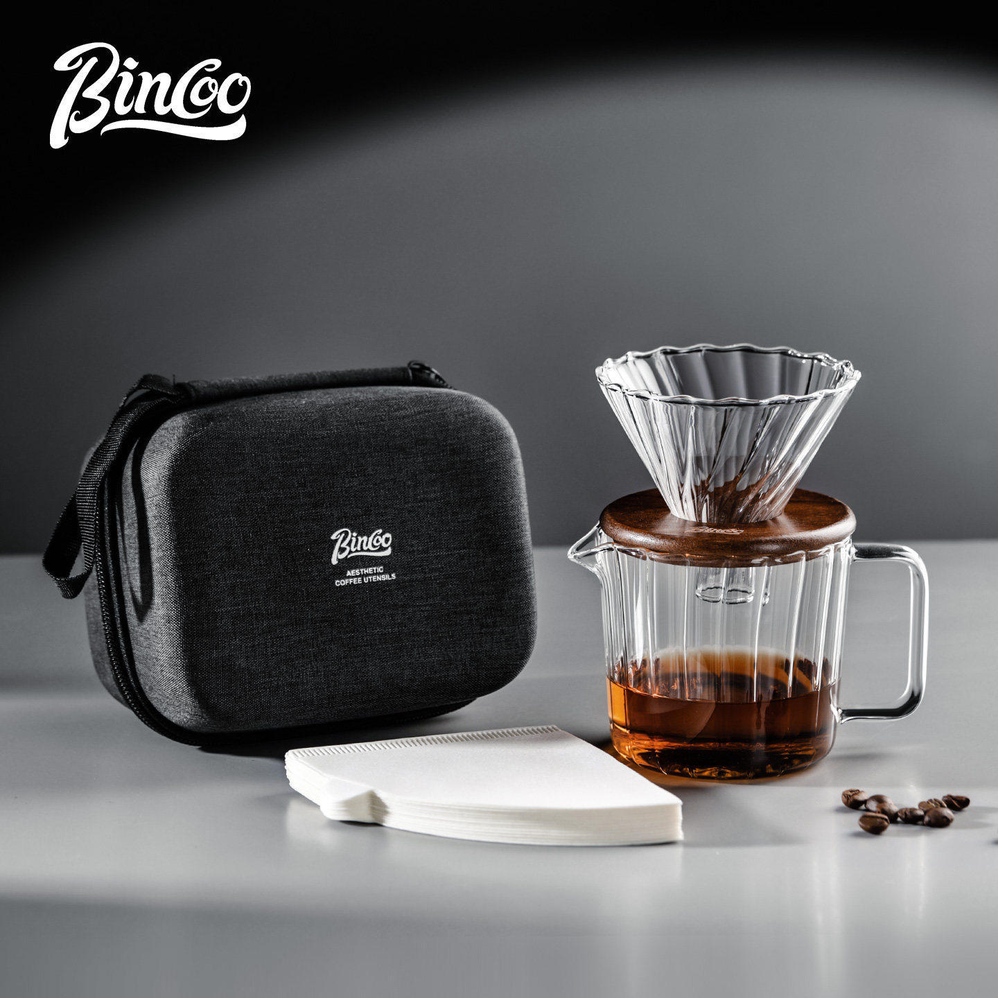Bincooハンドパンチコーヒーポットシェアポットガラスv60フィルターカップドリップフィルター濾紙ハンドパンチコーヒーセット