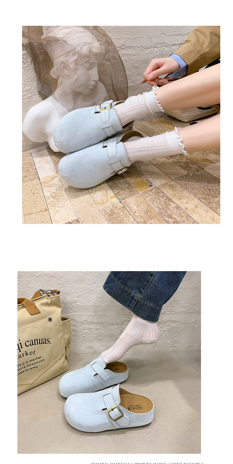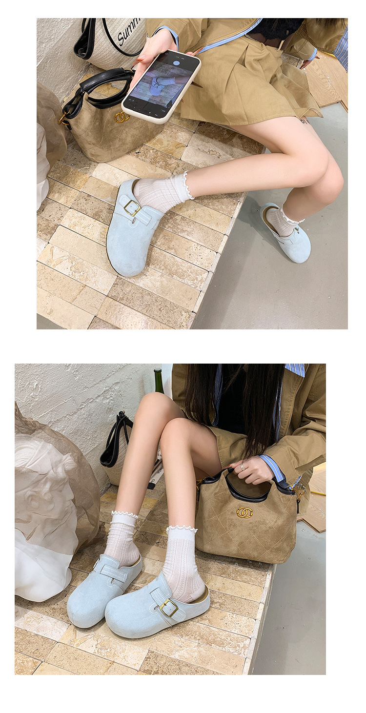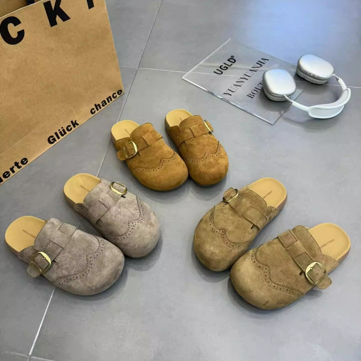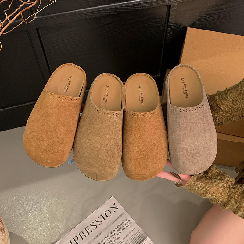 厚い底の頭の半分のスリッパの女性のタイプ2025春の新型の復古の百合の怠け者の足は滑り止めの博ケンの靴を踏んでいます。