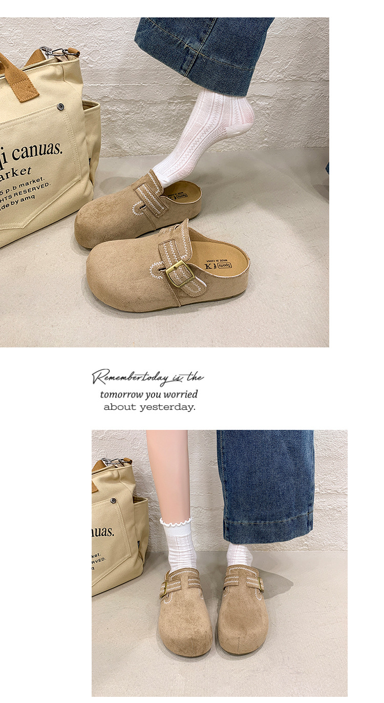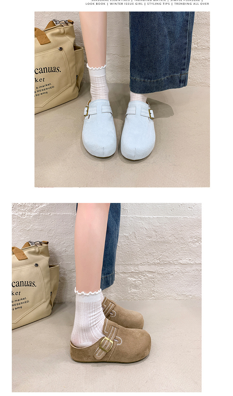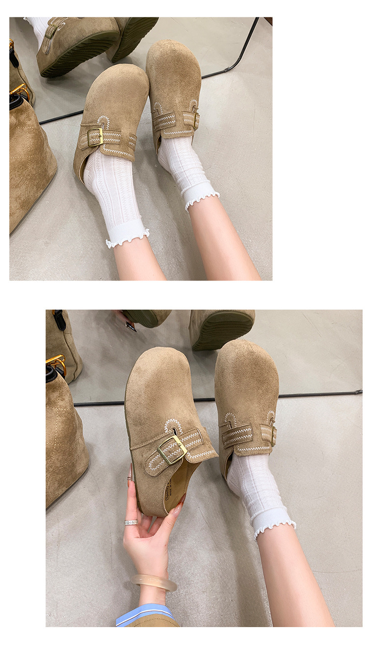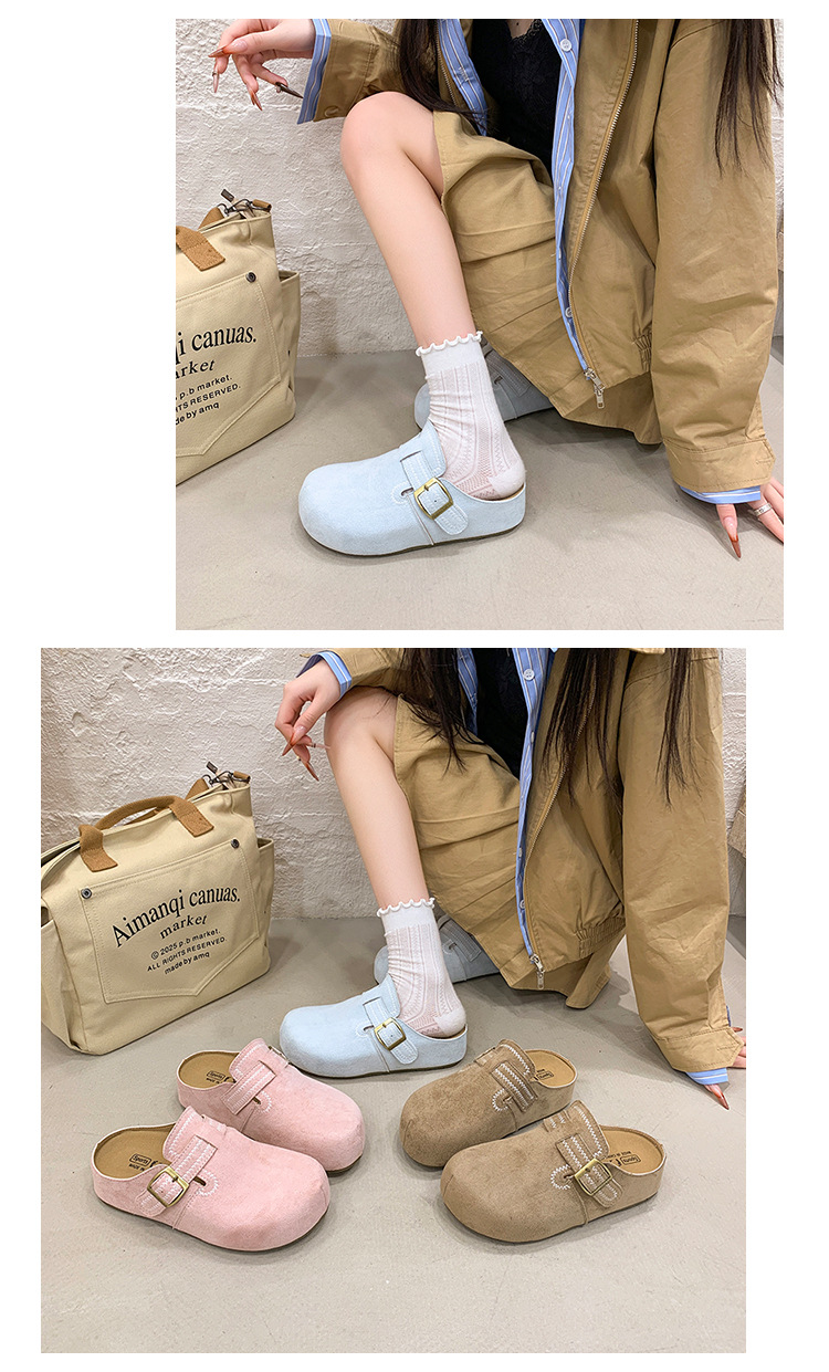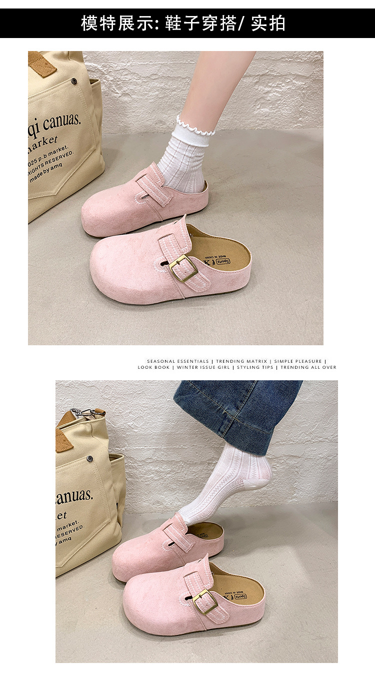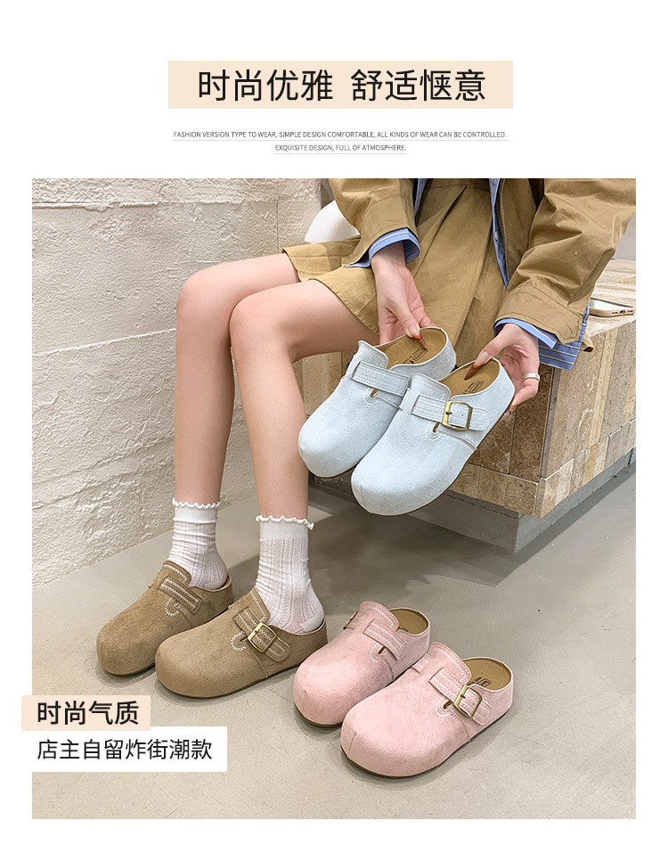 厚底内增高加绒勃肯鞋包头半拖鞋女外穿2025秋冬新款两穿博肯单鞋