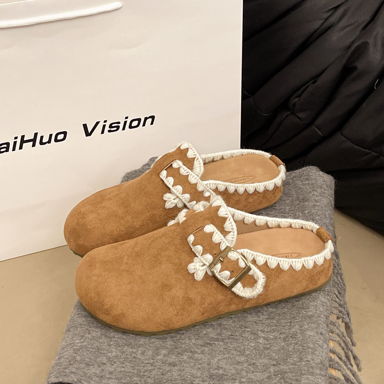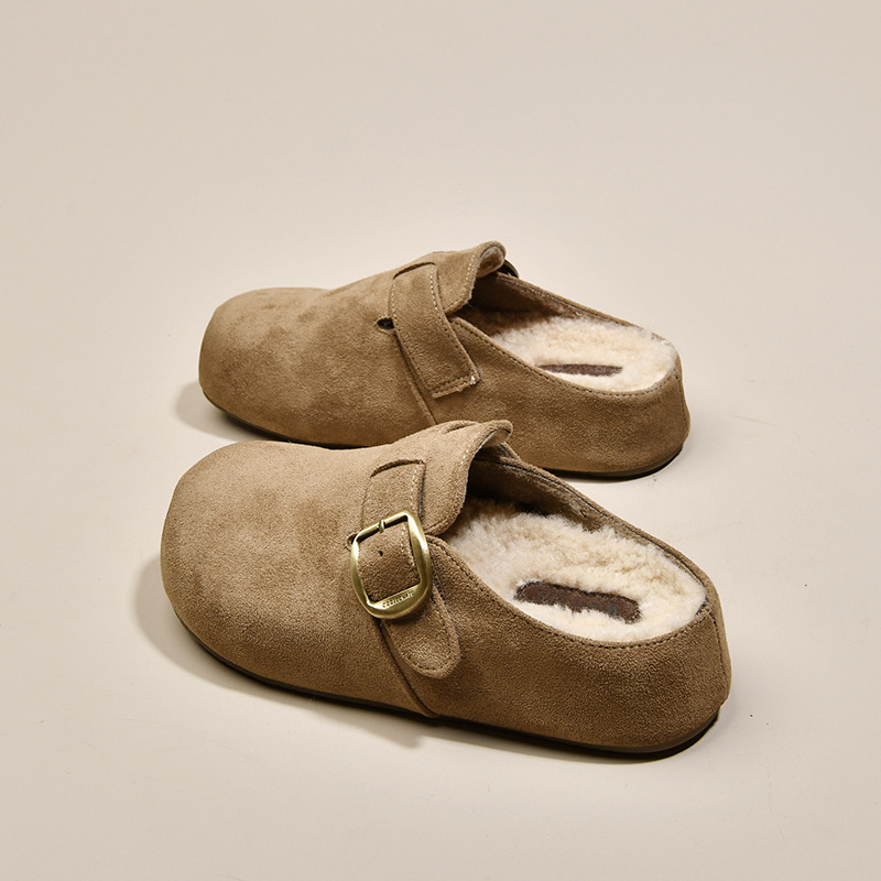 厚底勃肯包头毛毛半拖鞋女外穿2025秋冬季新款复古羊羔毛加绒棉鞋
