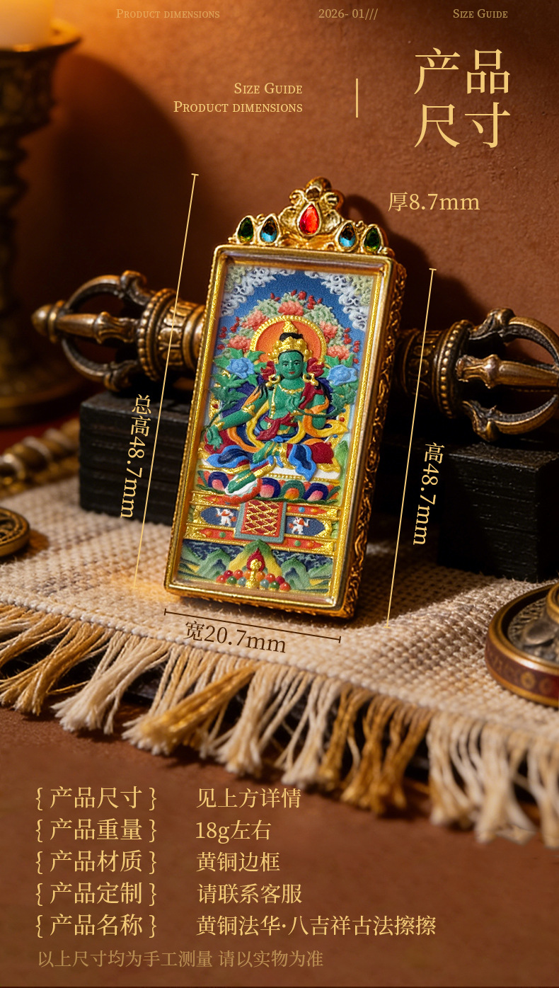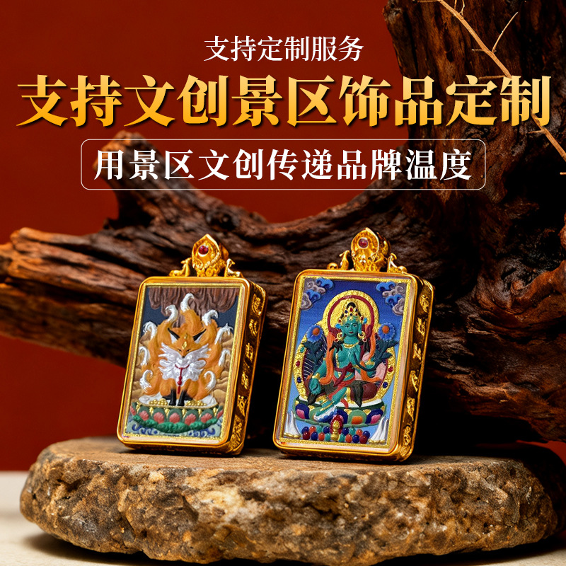 唐卡手绘吊坠十二生肖八大守护绿度母黄财可定图文创饰品手绘擦擦