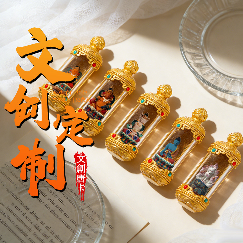 文创可定图手绘唐卡扎基拉姆文殊绿度母五爷前世今生擦擦唐卡吊坠