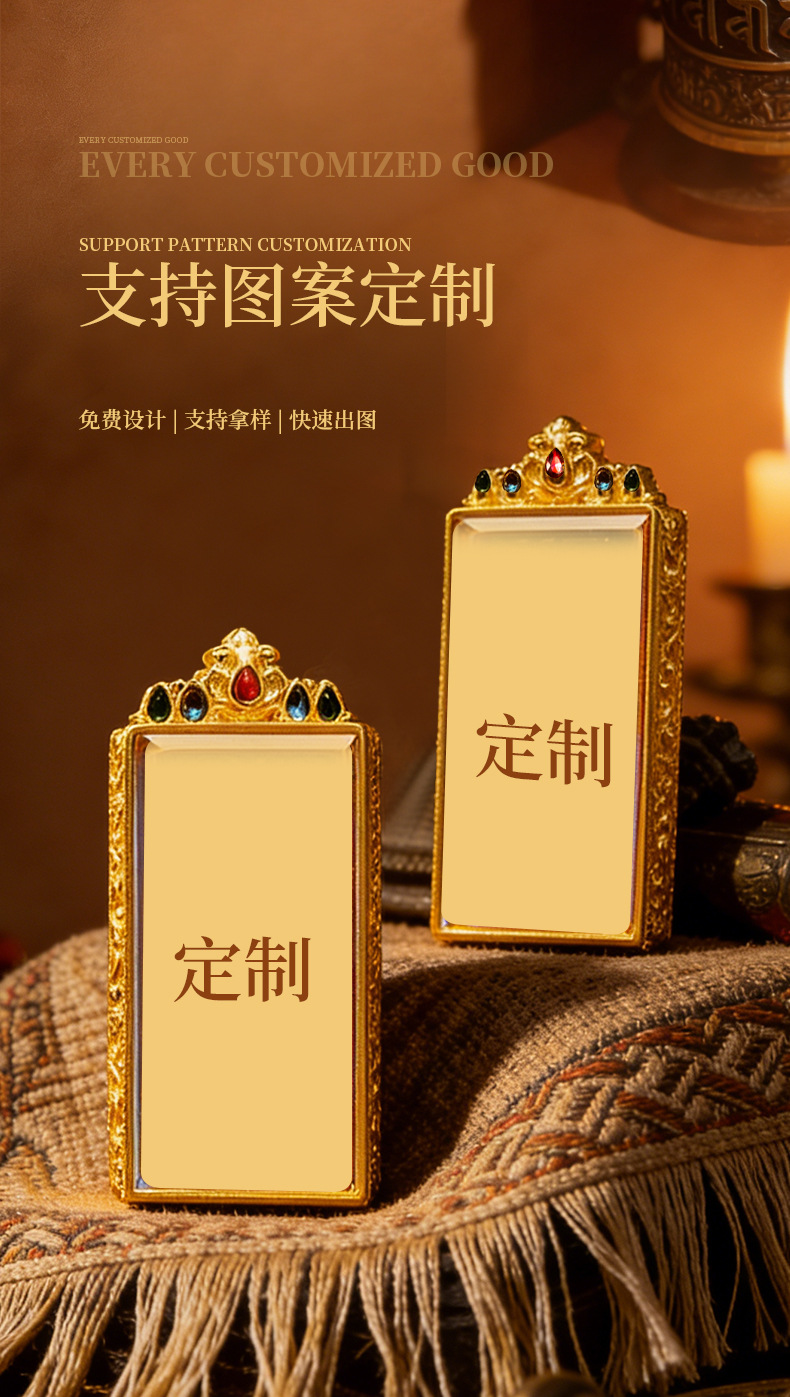 货号 黄铜法华·八吉祥长方形4*2古法擦擦画框-镀膜