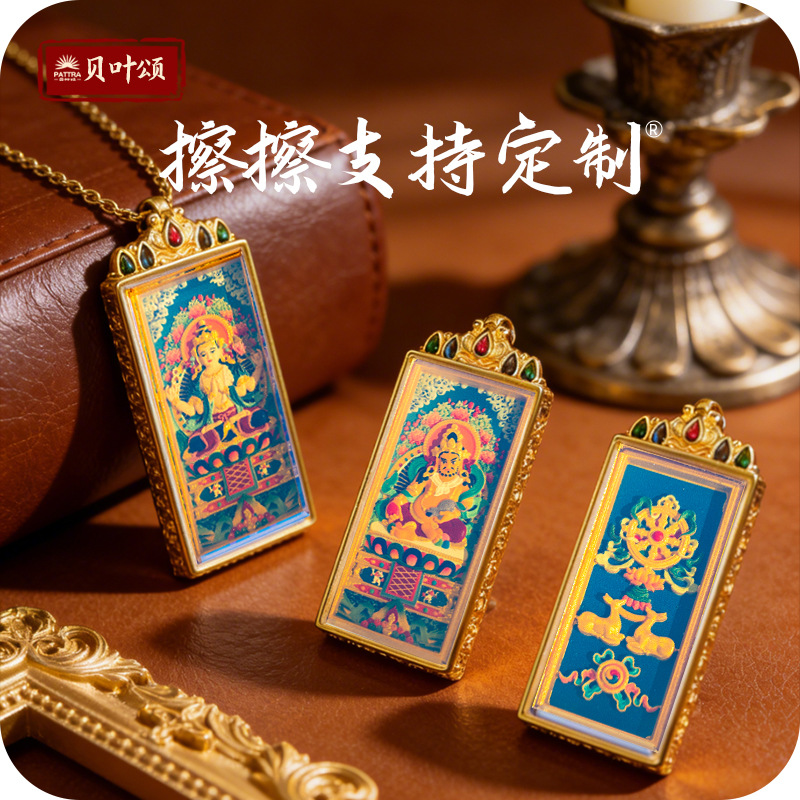 唐卡吊坠绿度母五爷黄财扎基拉姆药师可定图饰品男女立体唐卡吊坠